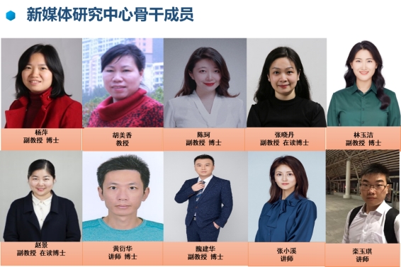 新媒体研究中心现有成员11人,其中教授1人,副教授6名,讲师4人,其中6人拥有博士学位。