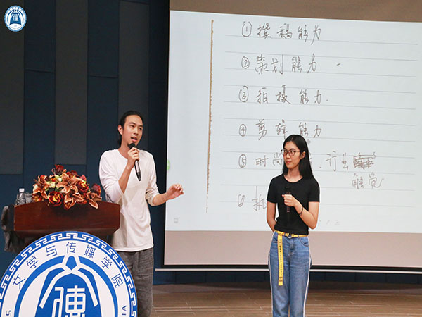 分享会开始前,卢哲颢师兄邀请公司卢同学就“你未来想要从事什么职业或者你的梦想是什么”这一问题进行回答。随后,卢师兄分别从撰稿、策划、拍摄、剪辑能力,时尚品味、行业嗅觉以及执行力等方面让卢同学进行自我能力评价。通过同学们的回答,卢师兄展开了当晚的经验分享。