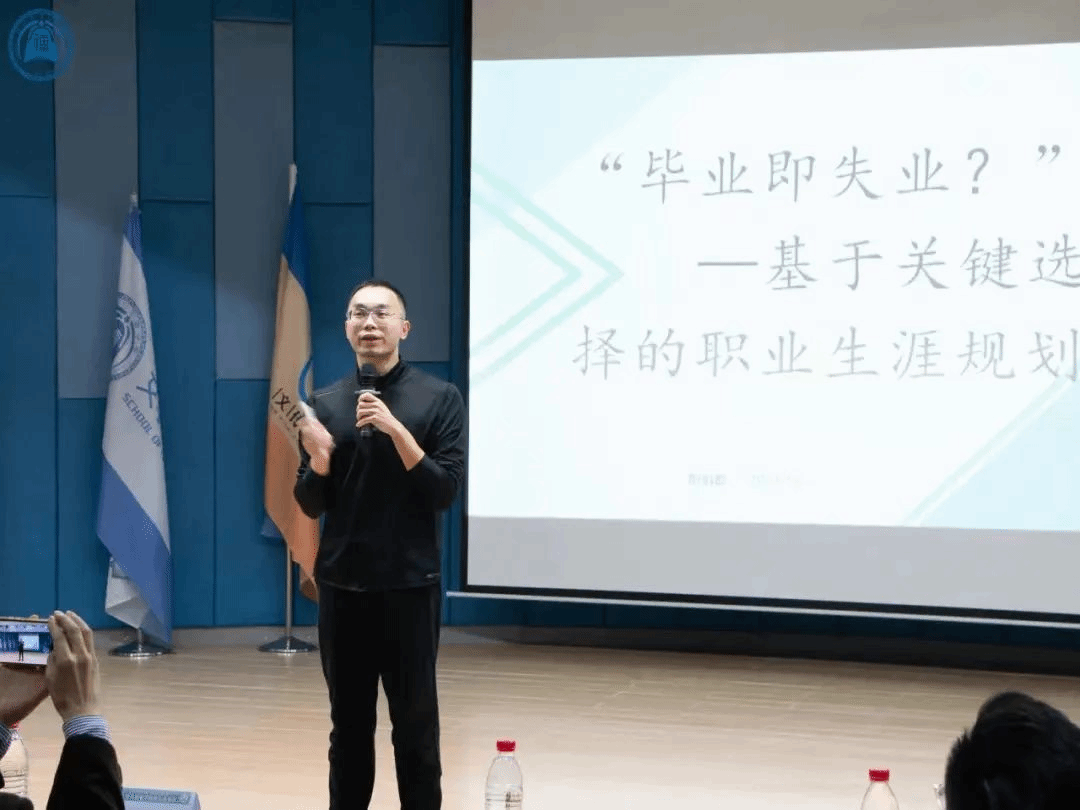 阳伯醇师兄就《"毕业即失业?"—基于关键选择的职业生涯规划》这一主题分享职场经验。阳伯醇师兄提出三点建议。第一,要明确自己想要的生活,选择适合自己的城市,再来选择自己的就业方向。第二,要尽早做好自己的职业生涯规划,并要提前准备。第三,要敢于拼搏,为了争取自己想要的生活而努力奋斗。