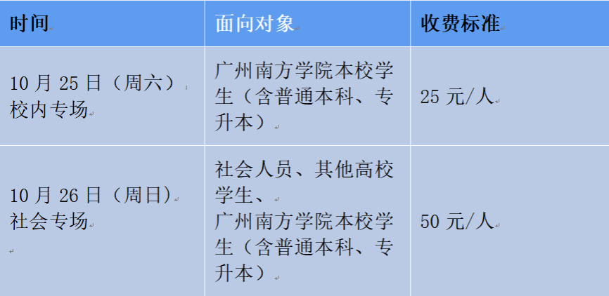 注:伟德国际1946本校员工(含普通本科、专升本)若报名10月26日(周日)社会专场,缴费标准为50元/人。