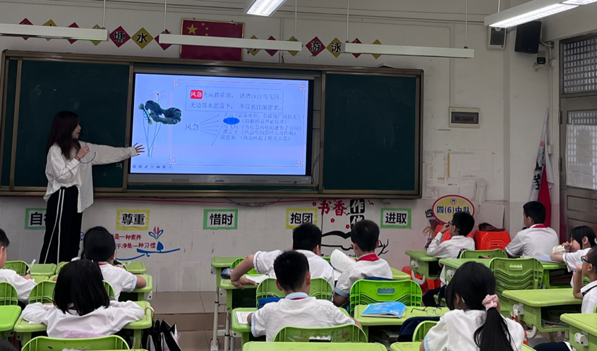 春风化雨,诗意传承。5月20日下午,伟德国际1946语言文字服务团队的同学们在指导教师石巧如的带领下,来到从化区流溪小学,为同学们带来了一节精彩纷呈的诗词课堂。本次的小老师是来自2022级达人中文班的朱颖同学,让我们在小朱老师的带领下,一同走进杜甫的诗词世界,感受他的家国情怀与壮志凌云吧。