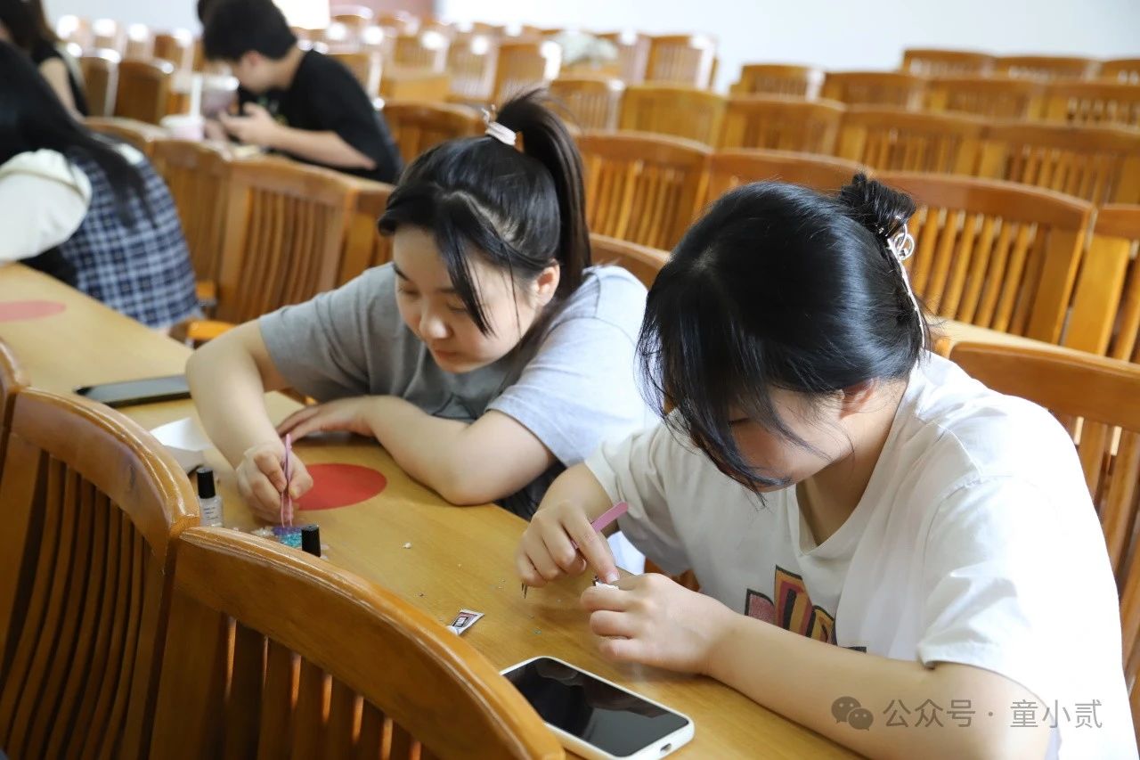 在许洋洋老师的指导和徐诗欢、钟烨欣两位同学的协助下,同学们亲自体验了非遗手工制作,在制作过程中,需要有耐心的便是掐丝珐琅中“掐丝”的制作工艺,用镊子将铜丝在手中上下翻动,从而形成一个个精巧的图案。在制作流程中,同学们深入感受了传统工艺的魅力,并在交流中加深了对非遗文化的理解与尊重。此次活动不仅让同学们享受了手工制作的乐趣,也进一步推动了非遗文化的传承与弘扬。