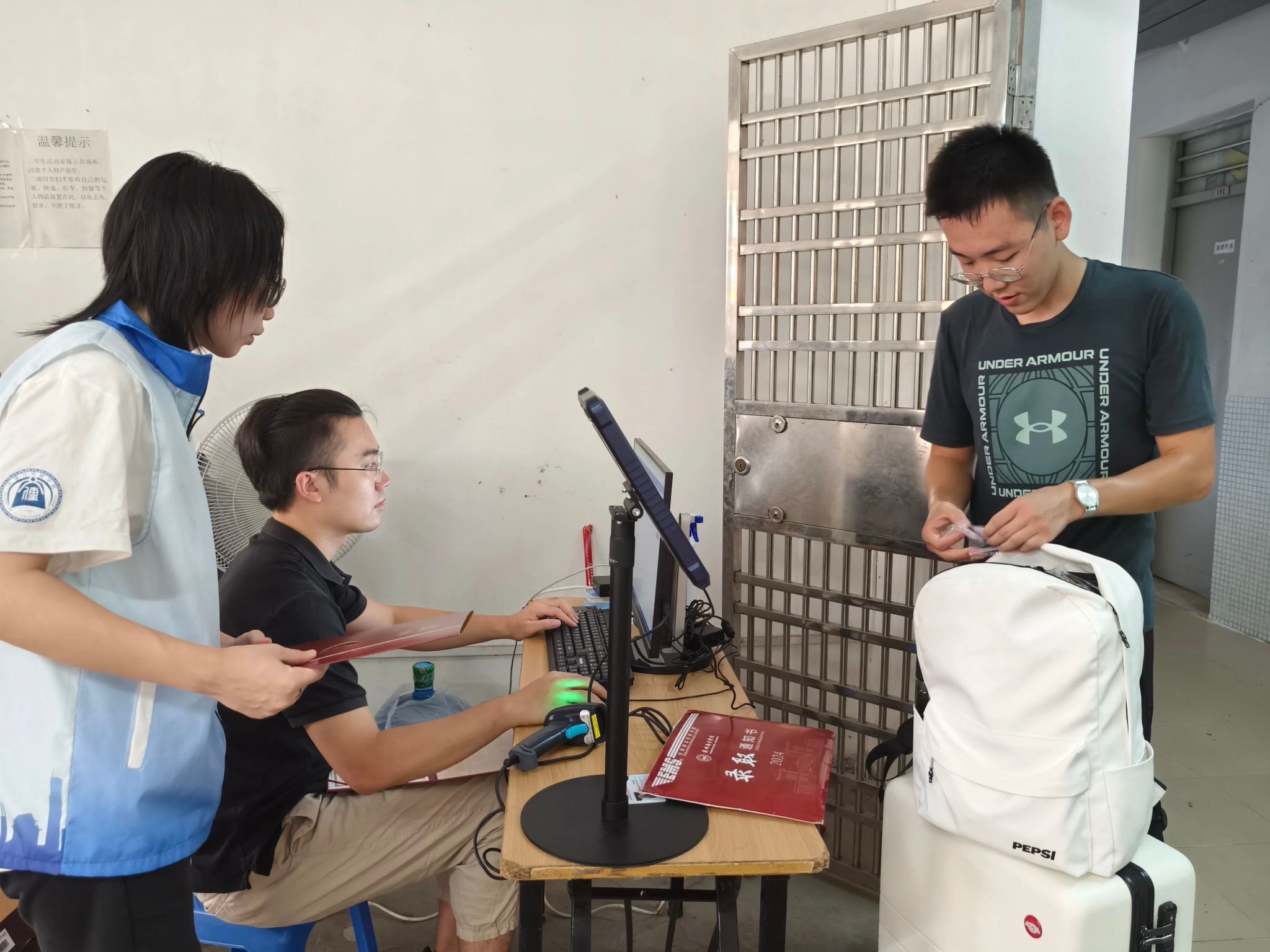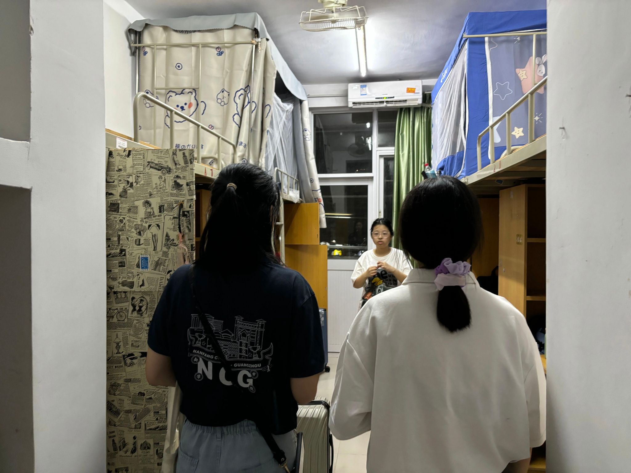 8月30日晚,辅导员原月老师和钟雪燕老师带着朋辈辅导员分别走访西2和西11两栋专升本新生宿舍楼,了解新生的入住情况和环境适应性问题,特别强调了宿舍各项安全的重要性。