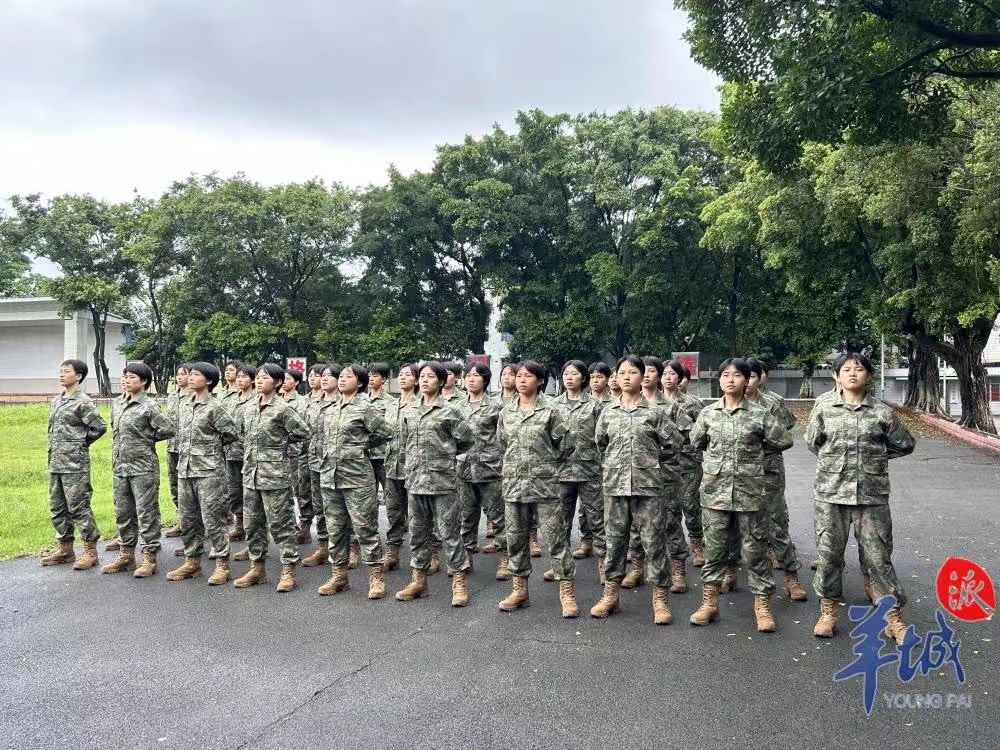 9月24日上午的广州天气微凉,大雨过后,广州市国防教育训练基地的女兵们迎着绵绵细雨在操场上进行役前教育最后一天的训练,铿锵有力的声音响彻宽阔的场地。记者了解到,9月25日,从广州参军入伍的46名女兵将启程奔赴军营。