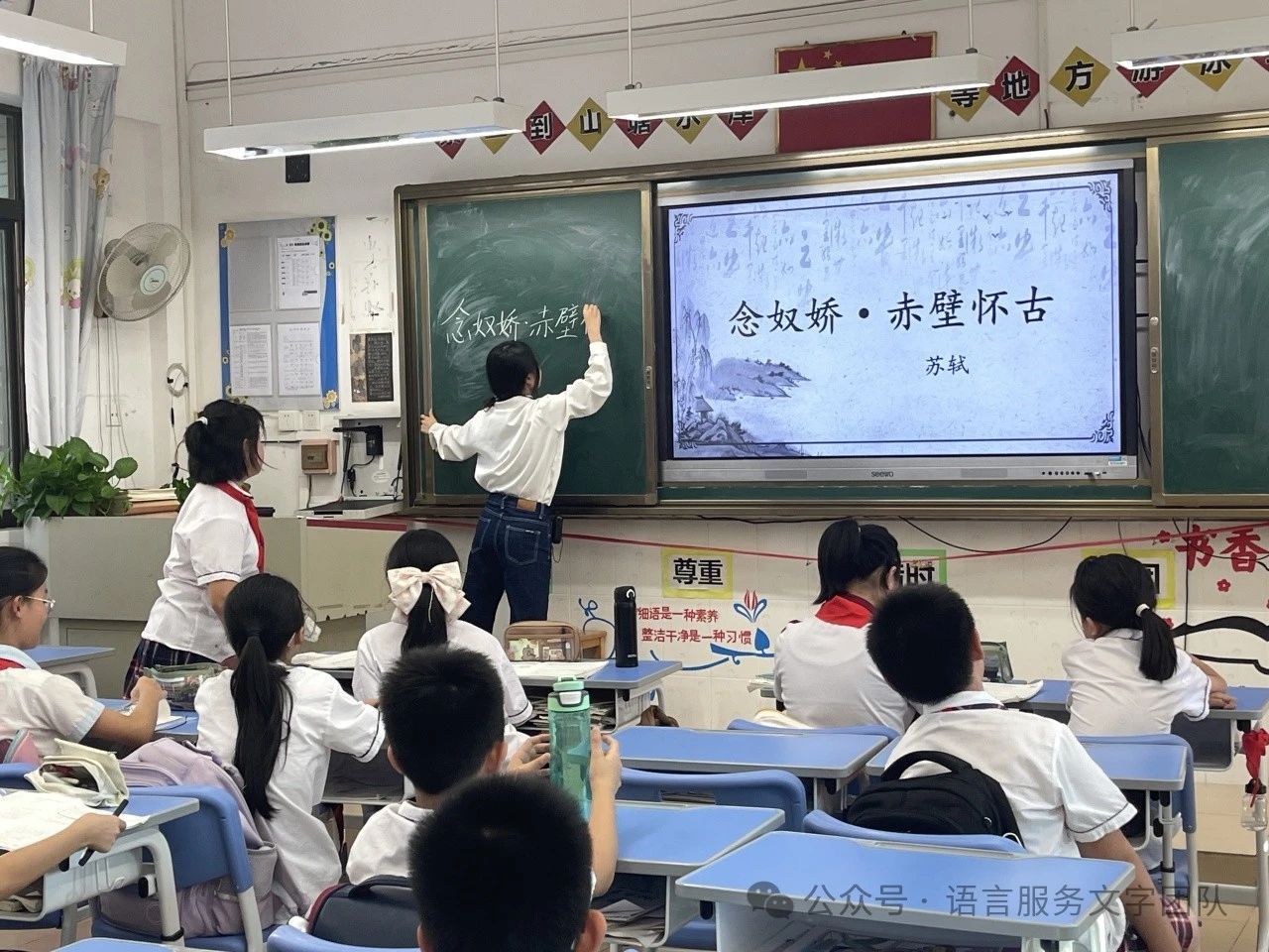 立于江水之边,看着滚滚东去的长江之水,往往会引起人们的思考。今天,就让我们一起走近苏轼的意境空间,一起品读《念奴娇·赤壁怀古》。《念奴娇·赤壁怀古》是宋代文学家苏轼的词作,是豪放词的代表作之一,曾被誉为“古今绝唱”。苏轼的一生都在经历仕途的坎坷,但他困顿人生的诗意值得我们品味。9月30日,伟德国际1946语言文字服务团队的同学们在石巧如老师的带领下,来到从化区流溪小学,开展了一节韵味无穷的古诗词课堂。