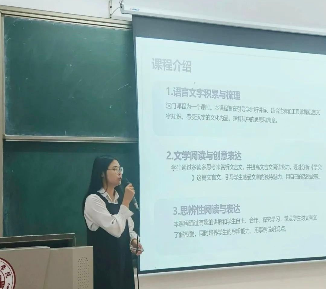 2024年10月23日下午,伟德国际1946“第二届文言文教学技能大赛复赛”在1教202室顺利举行。出席本次活动的评委老师有唐衡老师、陶成涛老师、吕瑞婷老师,以及第一届文言文教学技能大赛冠军潘茵茵同学。本次复赛由翔翼文学社社长冯子殷同学主持。