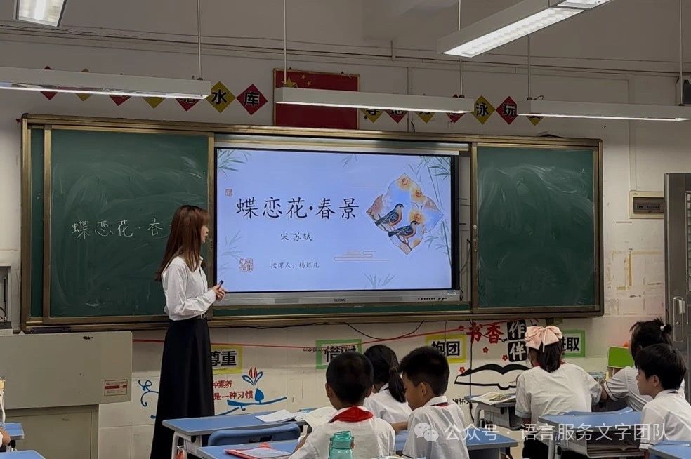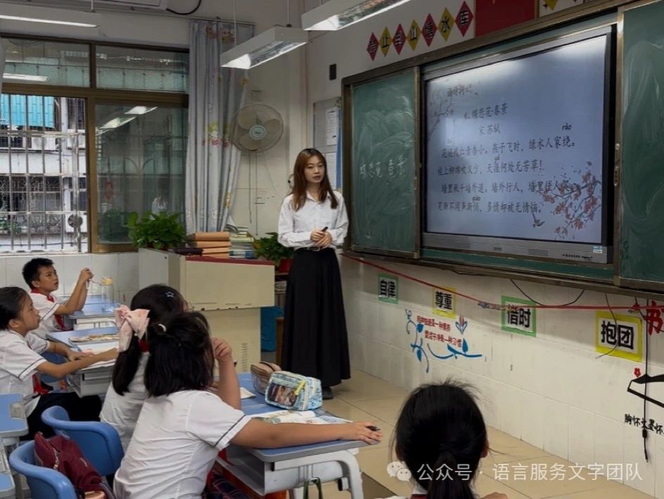 10月12日下午,伟德国际1946语言文字服务团队的同学们在指导老师石巧如老师的带领下,来到了从化区流溪小学,开展了一节别开生面的古诗词课堂——品读《蝶恋花•春景》,感受苏轼笔下的春意盛景。