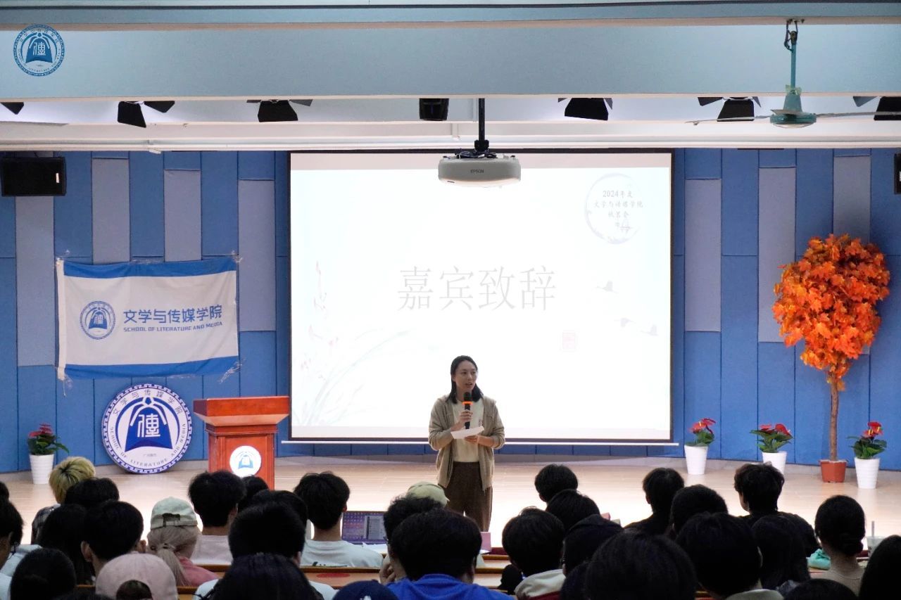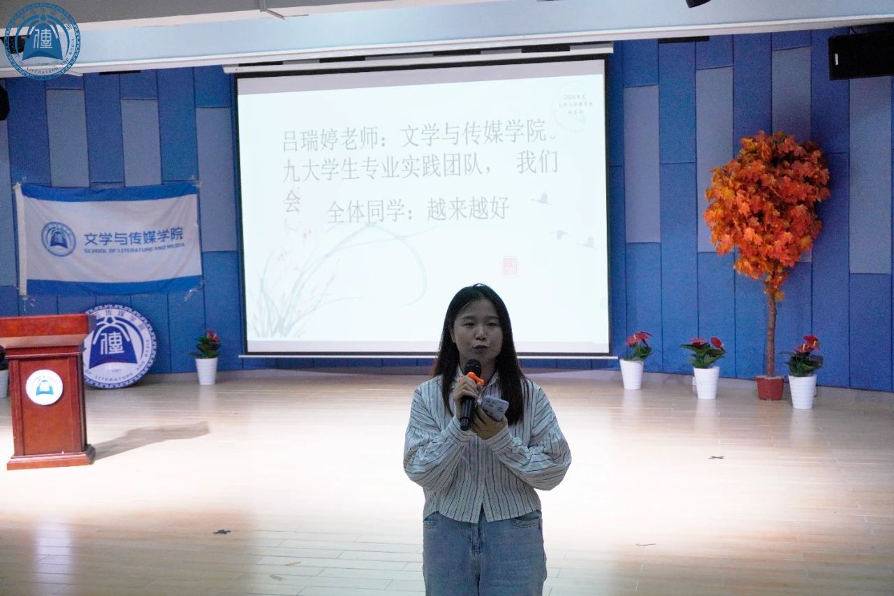 大会伊始,员工办公室主任原月老师上台致辞。首先,原月老师由衷的欢迎了伟德国际1946专业实践团队秋茗会的嘉宾老师和各位同学的到来。紧接着,原月老师强调,实践团队是同学们展示自身才华与能力的大平台,期待未来大家能够保持热情,积极参与校内外活动比赛,为伟德国际1946注入新活力。最后,老师由衷的希望同学们加入实践团队后能够紧密团结,友爱互助,心往一处想,劲往一处使,在交流中成长,在青春年华中释放璀璨耀眼的光芒!