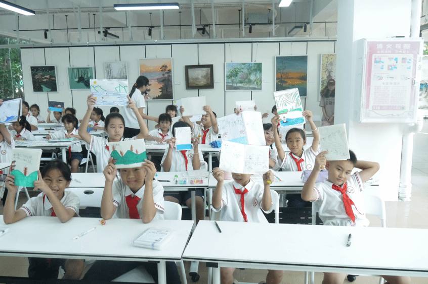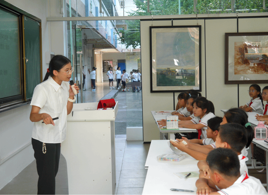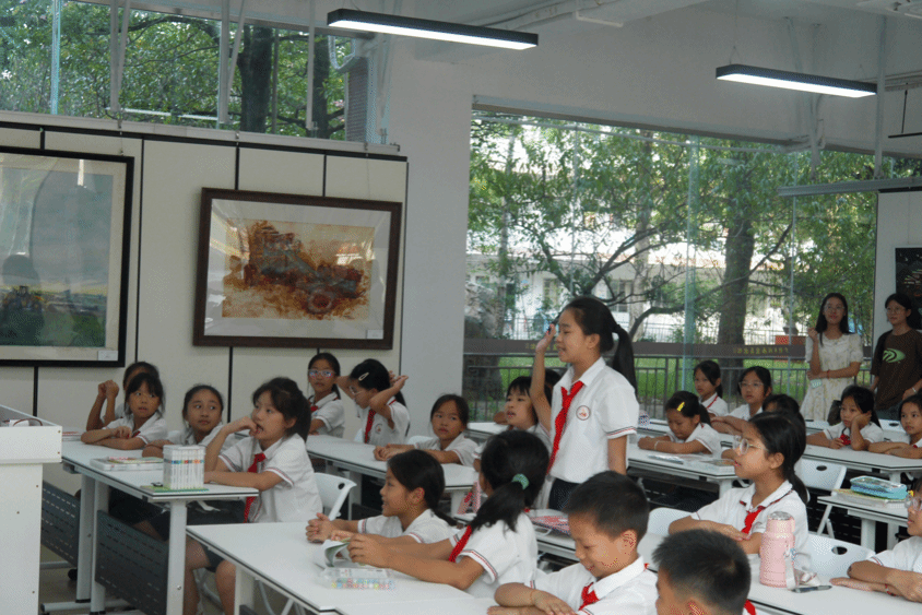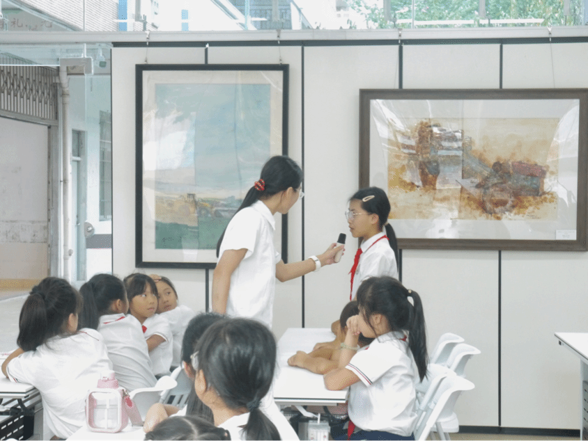 课程结束后,善施公司的李董事长为团队成员引介了实践课堂场地,展示了广州乡村画童美术馆的画作,分享了展览近况,并与实践团队的师生展开深入交流。