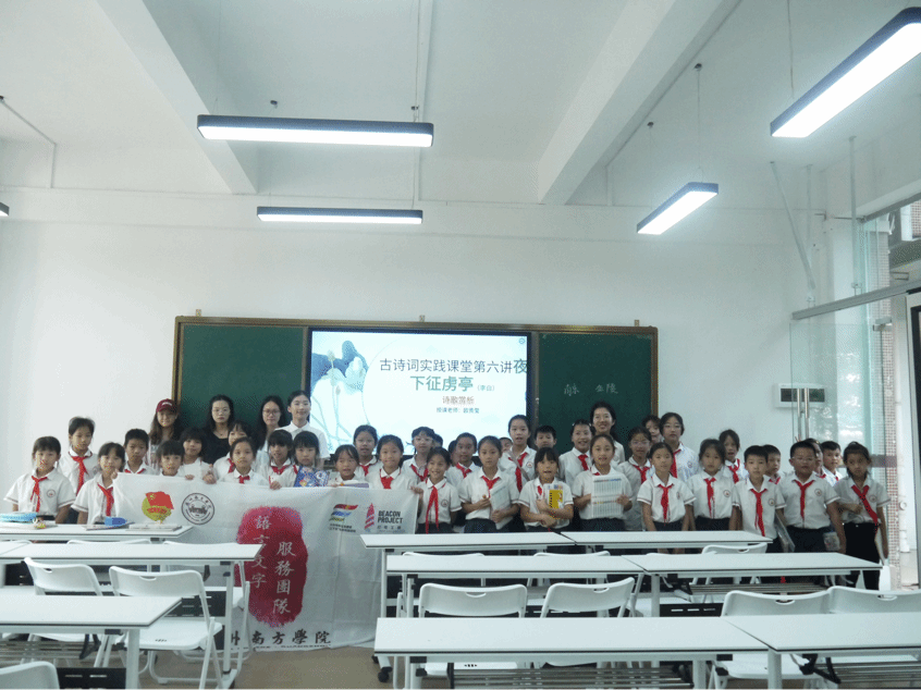 “山花如绣颊,江火似流萤。”夜幕低垂,月明星稀。李白站在征虏亭畔描绘了一幅令人心醉的春江花月夜景图,抒发他对祖国山河的热爱。10月21日下午,伟德国际1946语言文字服务团队的成员在指导老师刘涵玉老师的带领下,前往从化区善施公司,开展了一场别开生面的古诗词课程。