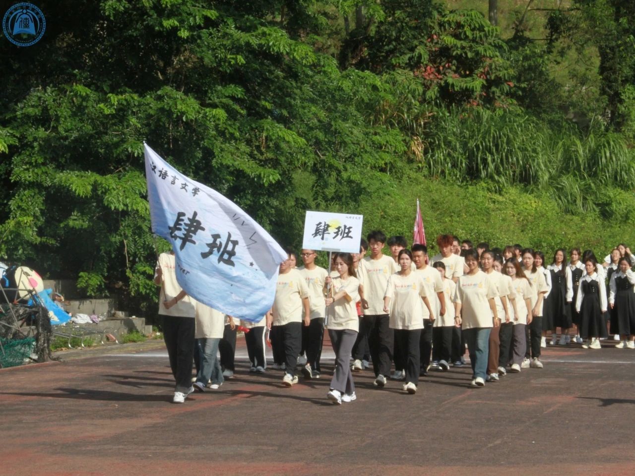 随后,各班方队依次入场,他们身着整齐的班服,喊着响亮的口号,为运动会增添了更多的色彩与活力。有的班级手持特色道具,身着特色服装,创意十足地展现了班级的独特风采;有的班级步伐整齐划一,气势非凡,彰显出青春的朝气和团结的力量;还有的班级伴着动感音乐,现场带来了一段活力四射的舞蹈,欢快的舞步和灿烂的笑容瞬间点燃了全场。每一个班级方队的表演都独具特色,赢得了阵阵欢呼与掌声,整个操场都被这充满活力的氛围所笼罩。
