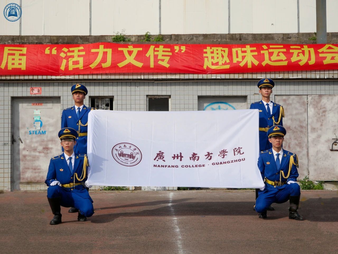 接下来,院徽院旗方阵入场,方阵成员手持院旗院旗,步伐稳健,公司吉祥物“童童”也活泼地伴在一旁,象征着活力文传一路向前。