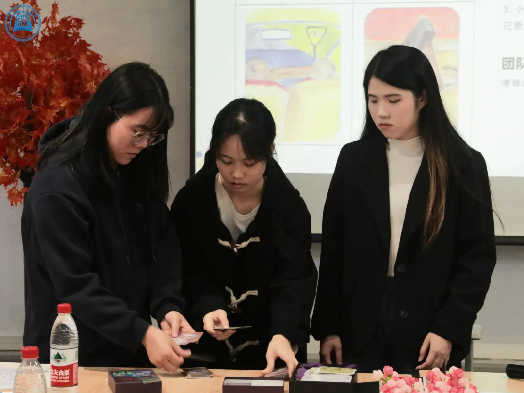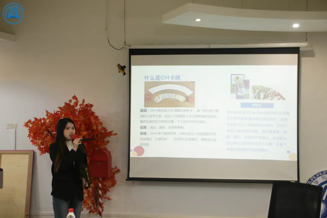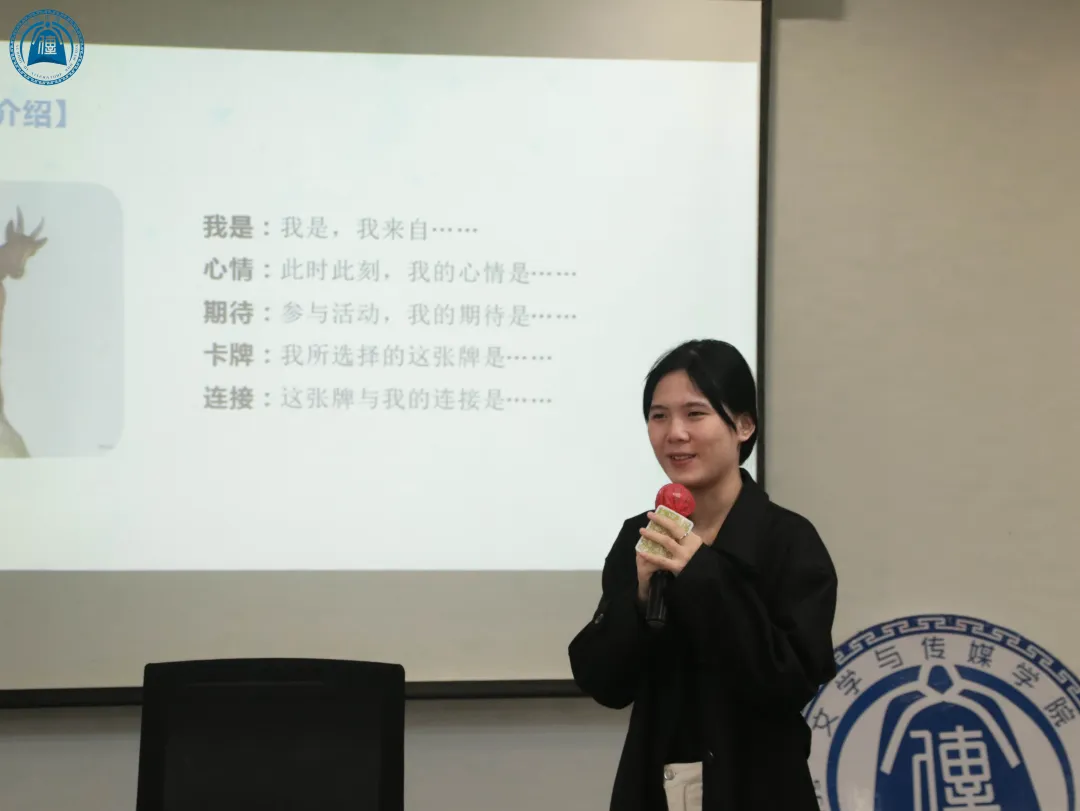 沙龙伊始,钟老师对OH卡牌来源及其玩法规则进行了简要介绍。接着,进入自我介绍环节,钟老师让同学们随机抽取OH卡牌,根据我是谁、心情、期待、卡牌及卡牌的链接五个模块进行个人介绍。基于同学们对卡牌的个性化见解与感悟,钟老师顺势引出此次沙龙的主题——爱的五种语言,巧妙地完成了从开场介绍到主题导入的过渡,为后续活动的顺利推进奠定了基础。