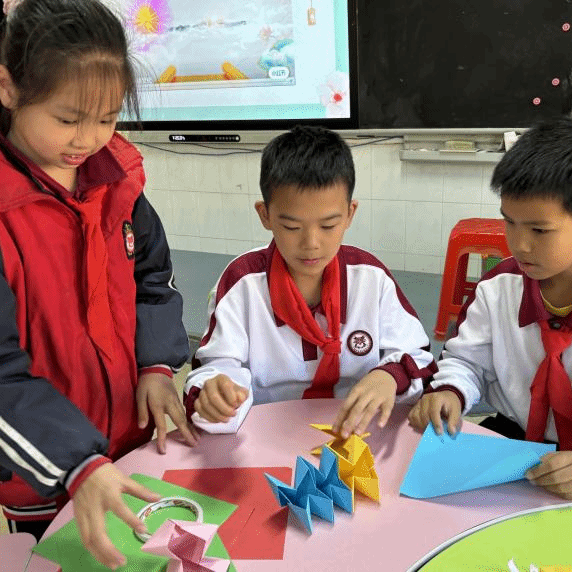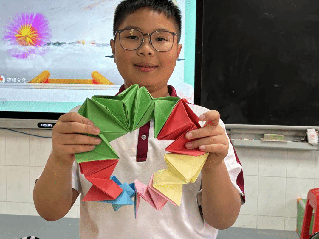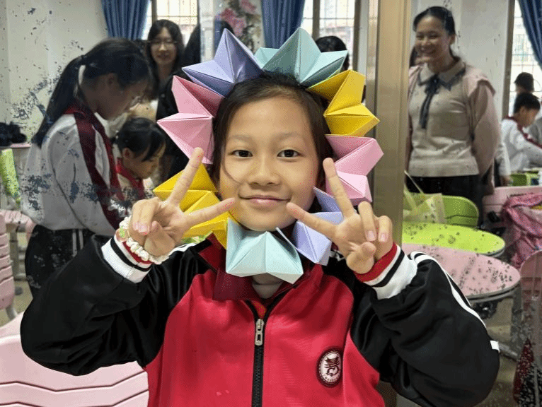 手中的卡纸,慢慢变成一朵朵绚烂的花,宛如一个个孩子成长为祖国的花朵。每一次粘贴,都充满了期待和惊喜,每一次翻转,都像是打开了新世界的门。小小的花,折出大大的梦。掌中之花,是独属于自己的花,更是传承非遗技术的花。