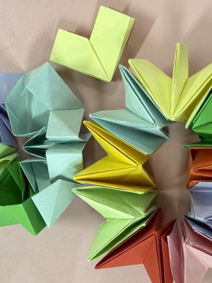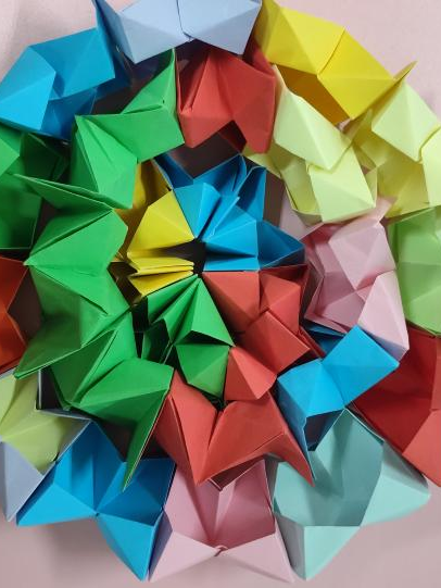 彩色卡纸两角轻轻对折,翻花创作就已开始。孩子们的眼神闪烁光亮,每一份想象都凝聚手中。笑脸环绕,彼此间交流着翻花的技巧与速度,小小的翻花,承载着大大的快乐。创造力如花朵般绽放,每一个翻花都是他们心中的小宇宙。