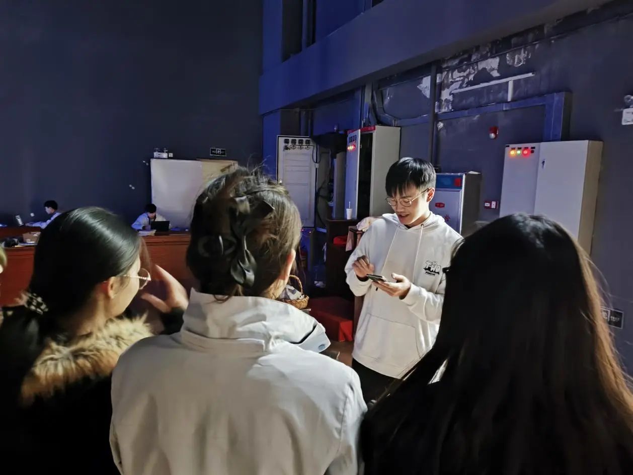 每一次的文传实践课程展演都涉及到较多的表演单位和同学。舞台两侧候场人员的调动以及各个表演单位的催场则是催场组的主要任务。在前期工作中,由于催场组与表演单位缺少沟通以及演职人员们对剧本与舞台不熟悉,协调程度不高成了他们必须在演出前解决的最大问题,在多次的会议和与各表演单位的负责人的沟通后,他们也终与所有演职人员一同齐心协力为大家呈现了一场完美的演出。