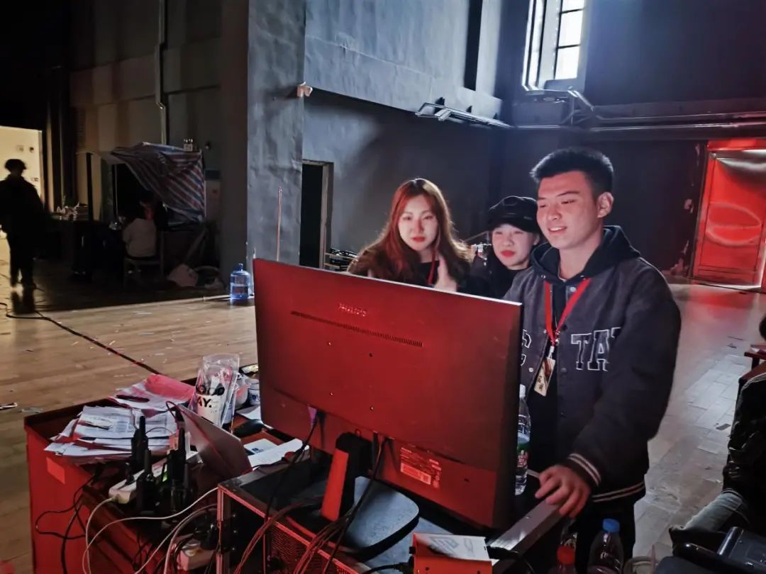 舞台上,最先给观众带来视觉冲击的是一整块作为背景的LED屏幕。在排练过程中,LED屏幕和灯光的配合是整个LED组面临的最大挑战。面对这一困难,音画组的同学在晚会的过程中一直保持着语音通话的状态,“三二一”的口令最后练就了LED大屏和灯光的完美配合,保证了最佳视觉效果。
