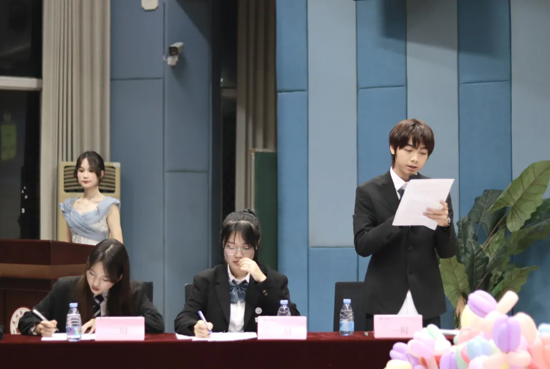 接下来,2021级悬河辩论队代表刘天旭发言。她说到,辩论兼具尖锐性与包容性,讨论的观点并非绝对对错。辩论的价值,在于引导辩手挖掘辩题背后的情感价值,领悟其深刻内涵。尽管辩论失败会带来痛苦,但我们不该因结果否定自身,因为每一场辩论都是成长的契机。最后,她衷心地希望参与辩论赛的同学们,能在思维碰撞的舞台上,绽放耀眼光芒,展现文传学子砥砺前行、追求卓越的精神面貌。