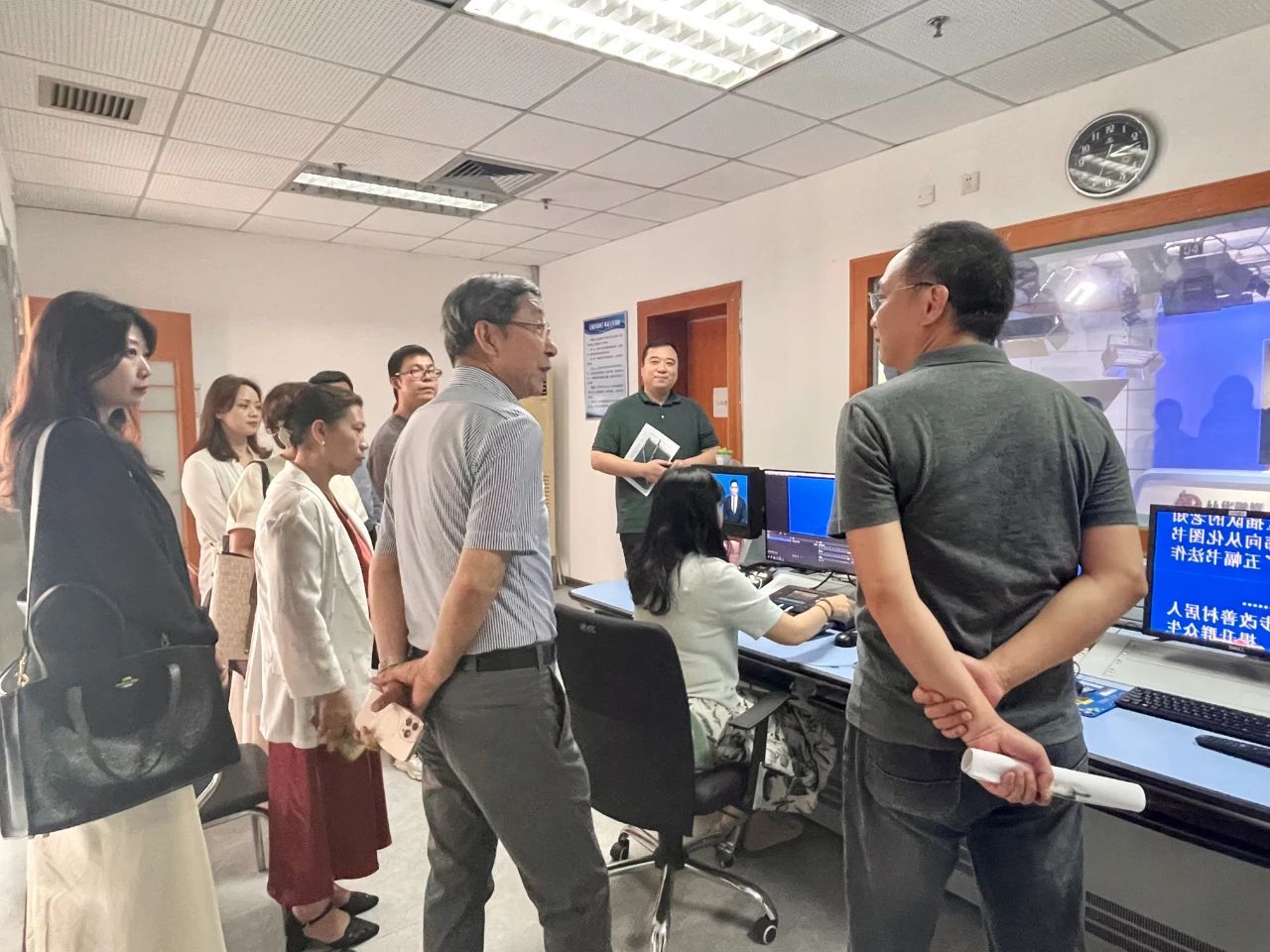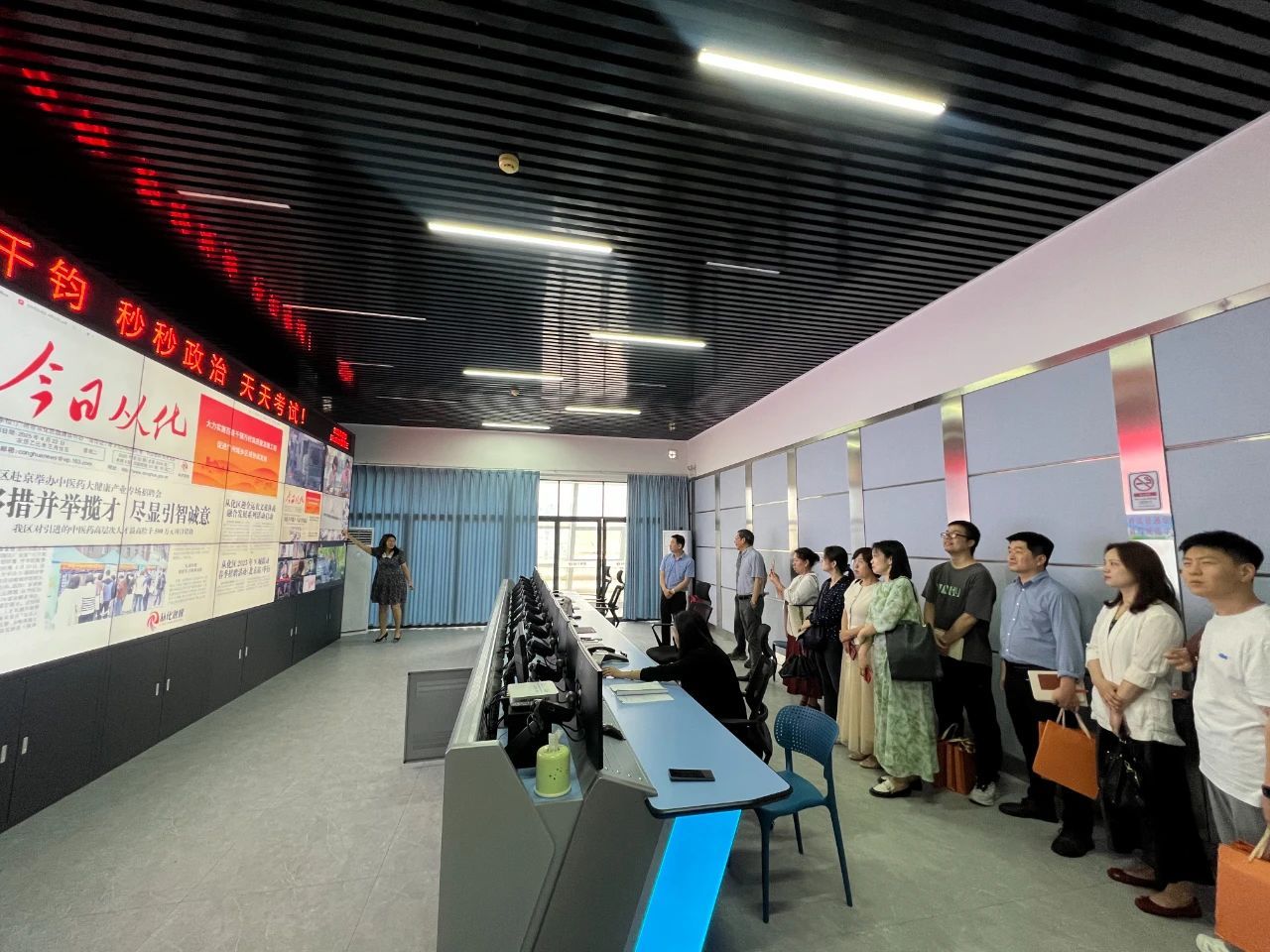 活动伊始,公司教师代表参观了演播厅、电台直播间、安全播出调度指挥中心以及新媒体部,了解融媒体中心各区域的功能和日常运作情况。