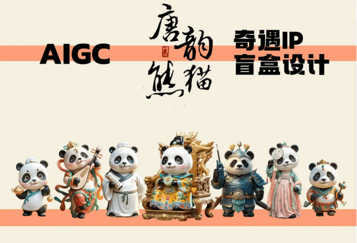 作品:AIGC唐韵熊猫奇遇IP盲盒设计与营销