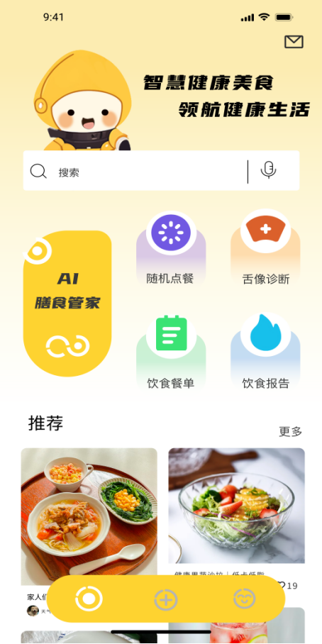 作品理念:智享健康APP响应了国家健康中国战略和健康生活方式行动方案的号召,致力于通过智能化的健康饮食指导,帮助人们养成良好的饮食习惯,提升国民健康水平。我们深刻认识到当前社会存在的健康饮食问题,其中最为突出的是健康饮食意识薄弱、缺乏个性化饮食指导以及健康饮食信息获取困难等。为了解决这些社会痛点,APP推出多项特色功能,包括美食论坛,让用户交流健康饮食经验,分享美味与健康的双重乐趣;推荐菜单,根据个性化需求智能生成营养搭配菜单,让每日饮食更加省心;随机点餐,通过趣味化选择方案为忙碌的日常带来健康与惊喜;饮食报告,通过数据分析生成直观健康建议,帮助用户掌控饮食平衡。同时,APP融合中医理念与现代科技,推出望舌问膳功能,通过舌苔分析提供个性化膳食建议;结合AI膳食管家的先进算法,实现一对一健康管理,从营养分析到目标跟踪,全方位为用户的健康饮食保驾护航。我们相信,智享健康APP的推出将为广大用户带来便利与福祉,助力国家健康事业,让更多人能够享受到健康饮食带来的幸福与益处。