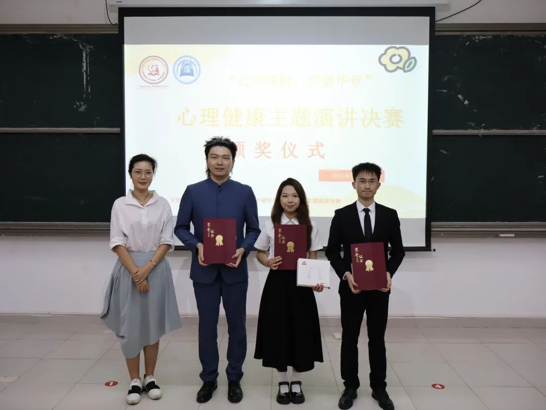 广东省2025年“5.25”大学心理健康月系列活动之“心向暖阳,声谱华章”心理健康主题演讲校内赛决赛正式落下帷幕。选手们真挚的分享、动人的讲述,如同一束束暖阳,照亮了我们的心灵,其传递的温暖与力量将永远镌刻在我们心间。此次比赛不仅是一场视听盛宴,更是一次心灵的洗礼。希望每一位同学都能以此为契机,深刻认识到心理健康是成长路上的基石,做到以积极心态直面挑战,用温暖的声音传递力量,在青春的画卷上谱写出属于自己的绚丽华章。让我们携手并肩,心向暖阳,以坚定的步伐拥抱充满希望的未来,让青春在心灵的暖阳下绽放出最绚丽的光彩。
