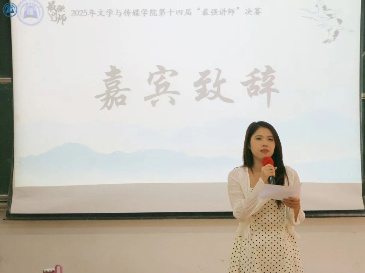 本次比赛采用模拟真实课堂的形式进行,评委老师们从课程设计创新性、教学方法有效性、语言表达精准度及课堂感染力等维度进行综合评审。比赛在钟雪燕老师的精彩致辞中正式拉开帷幕。她强调:“教师不仅是知识的传播者,更是思想的点燃者”,同时寄语选手们要努力以饱满的热情、扎实的专业素养和独特的教学风格为现场观众呈现出一场别开生面的教学盛宴。
