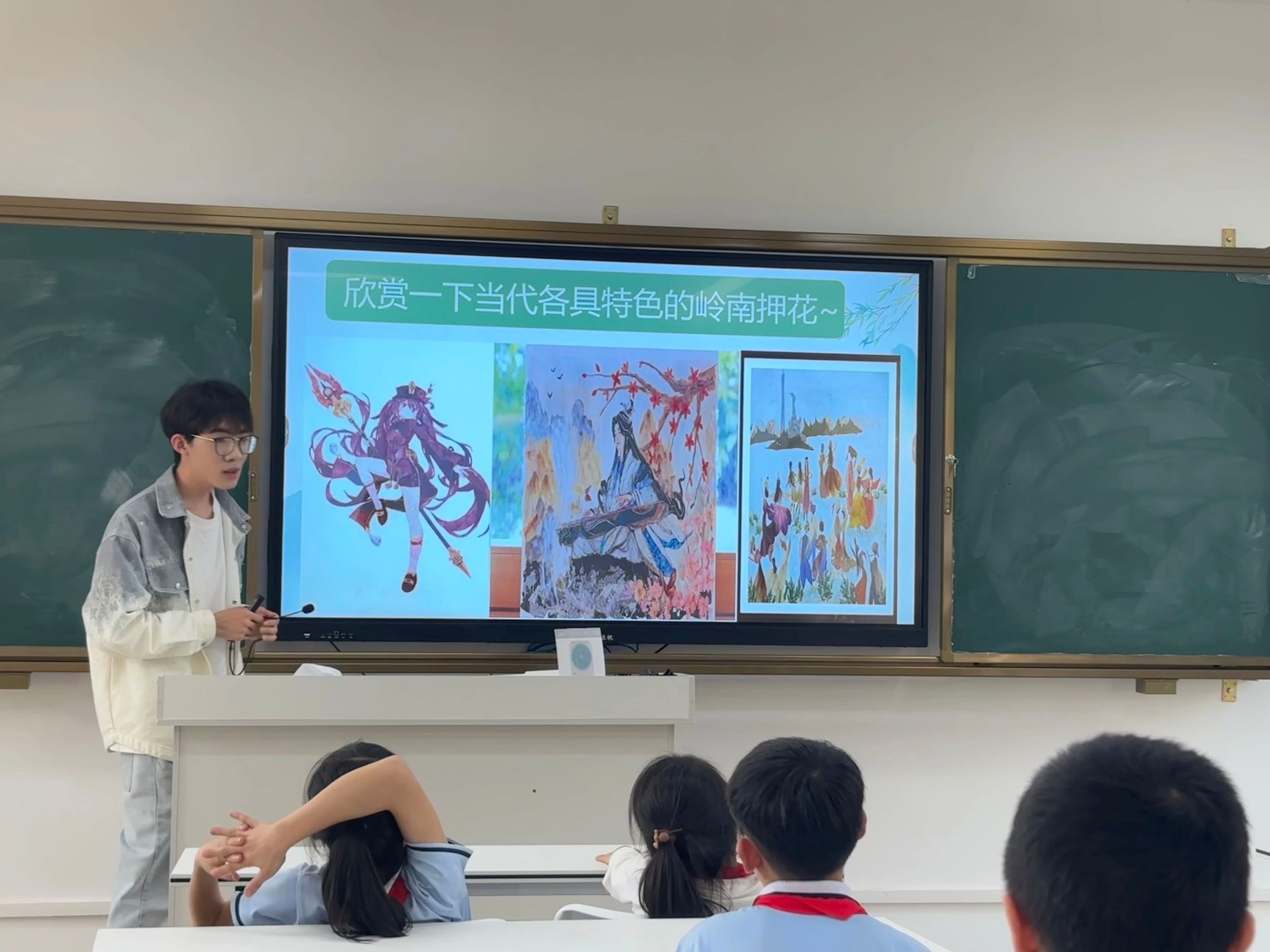 课堂伊始,小廖老师以“看到花会联想到什么?”为引,向同学们介绍了押花的发展历史。这一提问瞬间点燃了同学们的好奇心和探索欲。随后,小廖老师介绍了岭南的押花,它以植物为媒介,将人与自然、与生活的紧密联系呈现在世人面前。