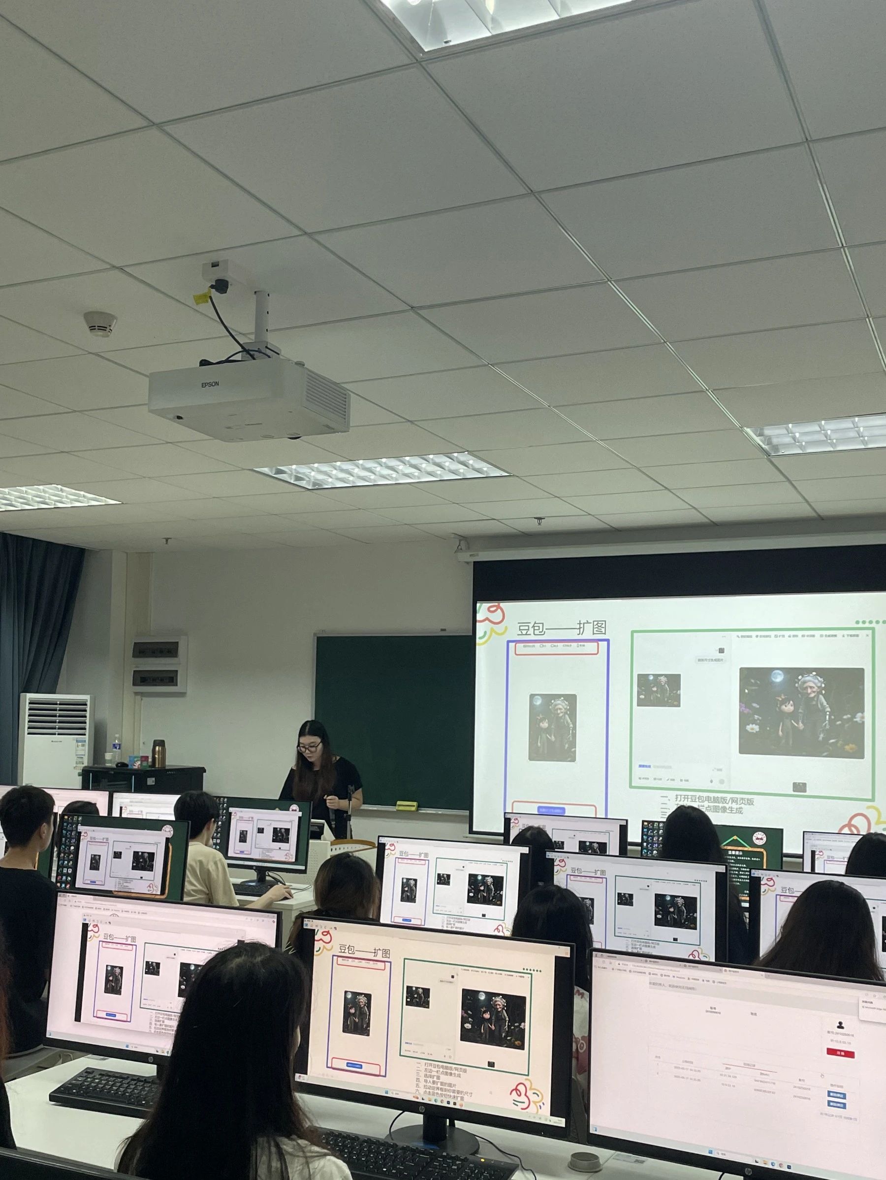 在发布了任务后,同学们着手进行海报风格设计,小老师们全员出动,一对一对各位同学进行了深入指导,对同学们的海报风格细致化,艺术字体,图片转化进行了教导。