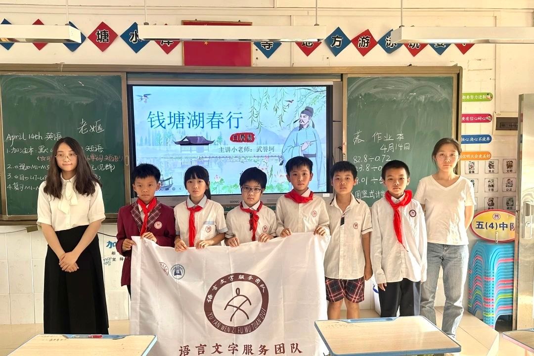 春水初涨的西湖边,在没有影像记录的九世纪,"大唐旅游博主"白居易,已用五十六字写下让后世屏息的江南春色。4月14日下午,伟德国际1946语言文字服务团队在指导老师石巧如带领下,前往流溪小学开展本学期第七次古诗词系列课堂活动。让我们跟着小武老师一起走进古诗词的世界。