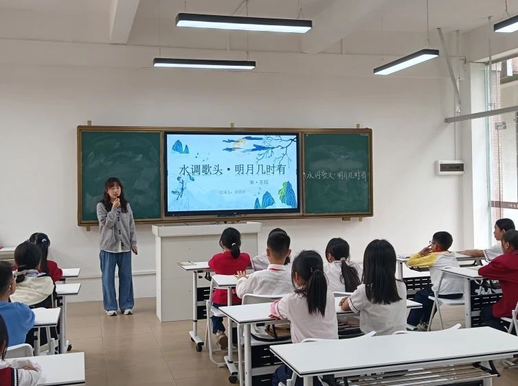 当平仄韵律化作心灵的节拍,当千年明月映照当下的悲欢,这堂穿越千年的诗意对话,同学们不仅领略了宋代大文豪苏轼在月光下流淌的关于亲情与人生的豁达情怀与深邃哲理,更在“把酒问青天”的千古绝唱中,感悟到中华诗词那跨越时空的永恒心跳。