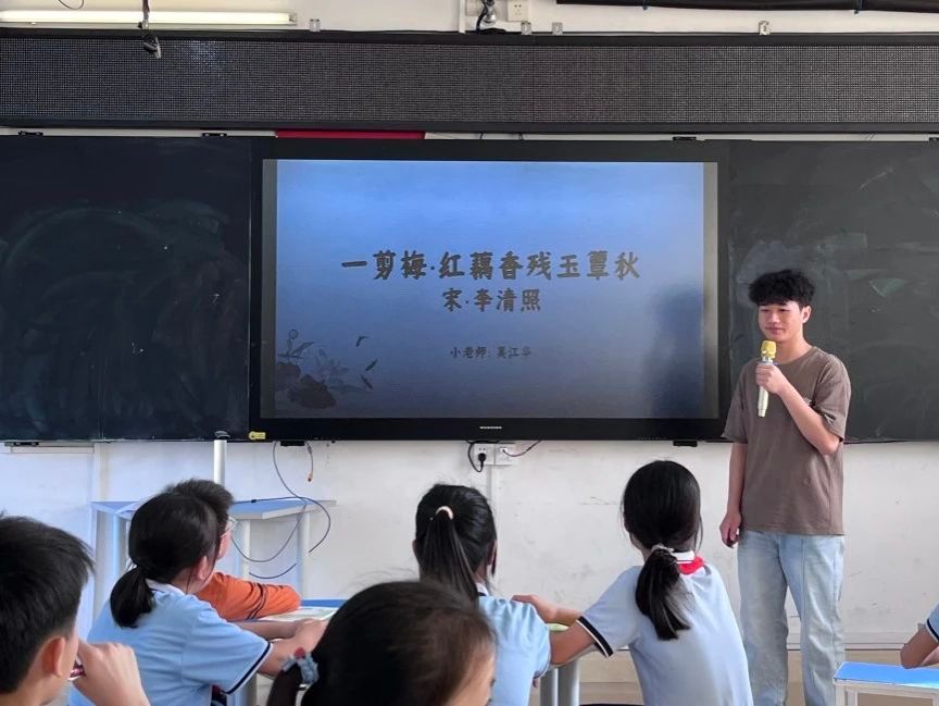 课程尾声,小莫老师对全词进行了艺术特色上的总结,这不仅加深了同学们对《一剪梅·红藕香残玉簟秋》这首词作的印象,更让李清照多情的才女形象在今天重现,使中华诗词中的婉约之美悄然无声地进入了同学们的心中。