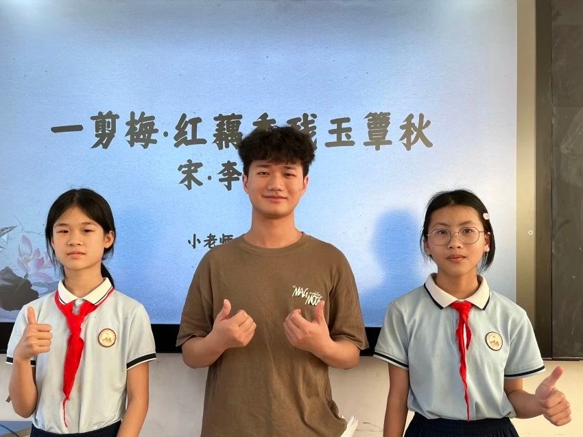 大家好,我是2022级汉语言文学专业的莫江华,这是我第一次讲李清照的词,带着点紧张又带着点兴奋。按照往常的课堂反馈来看,我很担心我调动不了课堂的气氛,但是没想到这次的课堂活跃度很高,同学们上课回答问题都很积极,课堂纪律也很好,每个同学都不走神不开小差。同学们的课堂反馈让我感动,在他们眼里我看到了对知识的渴望,对学习的热爱,也感到特别有成就感。同时,也感到了自己作为小老师的意义——带着同学们一起探索古诗词世界,发现古诗词之美。
