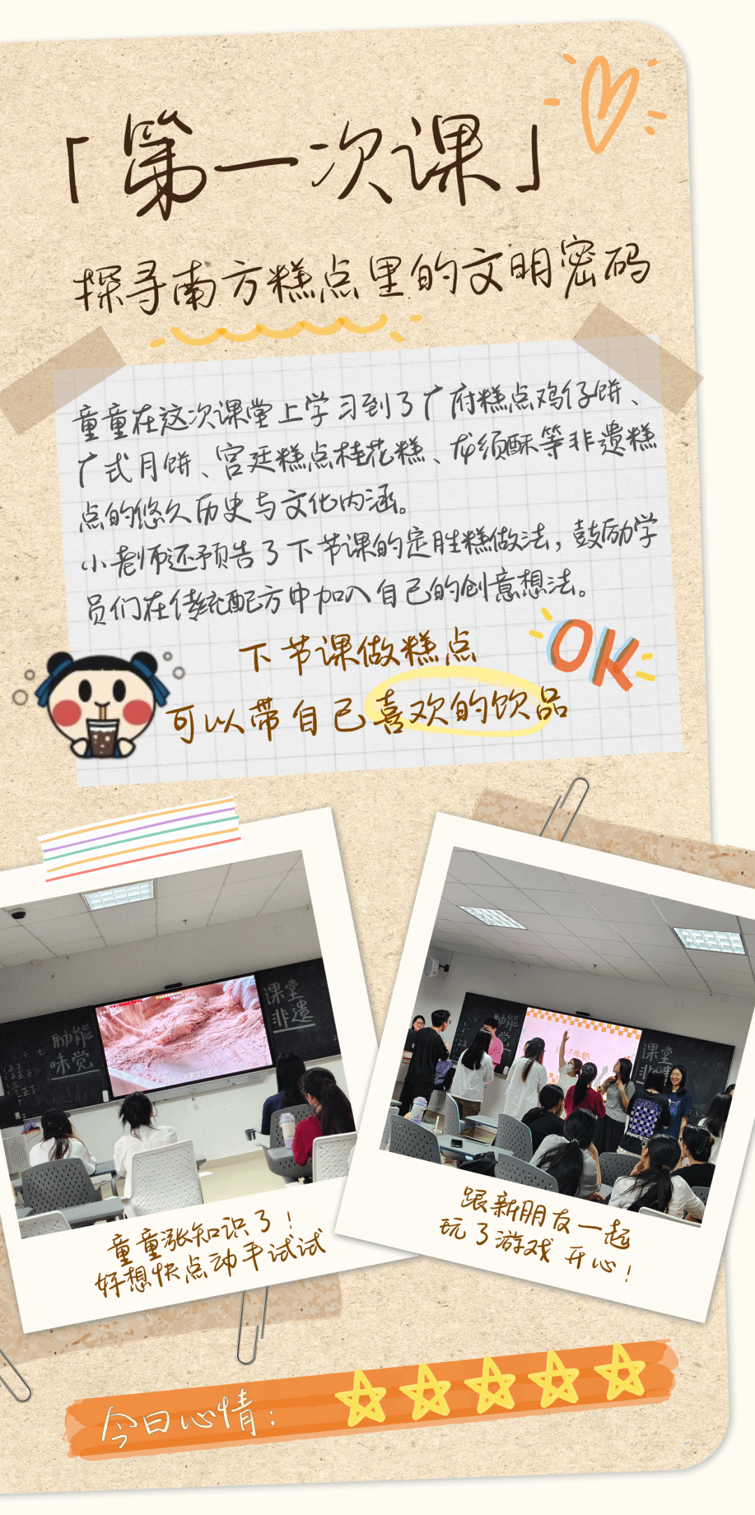 味觉非遗课堂由员工团队担任小老师,与同学们一起探索传承千年的非遗糕点。