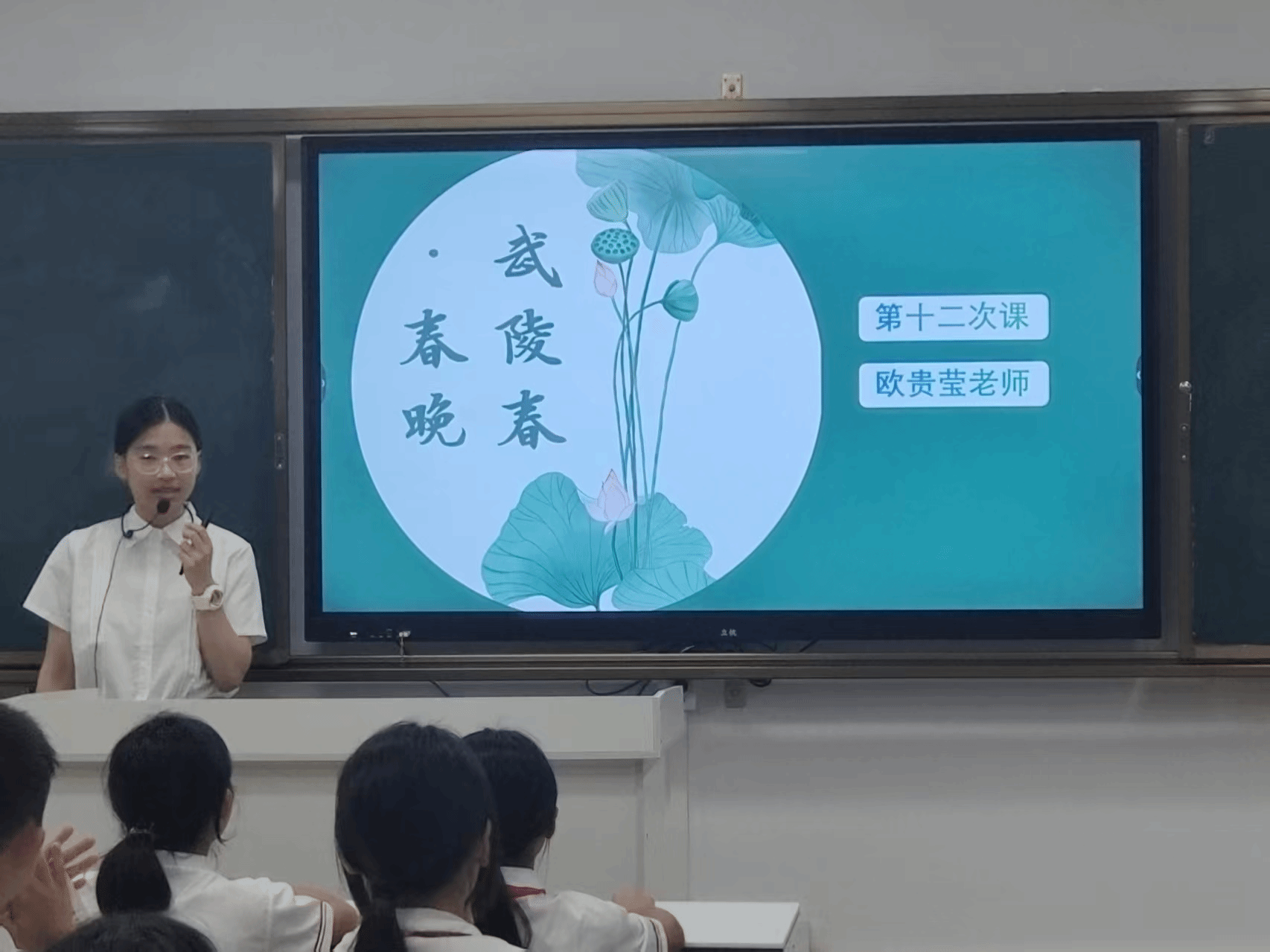 本节课的小老师是来自2022级汉语言文学专业的欧贵莹同学,让我们跟着小欧老师的脚步,一起感受《武陵春·春晚》中的春天。
