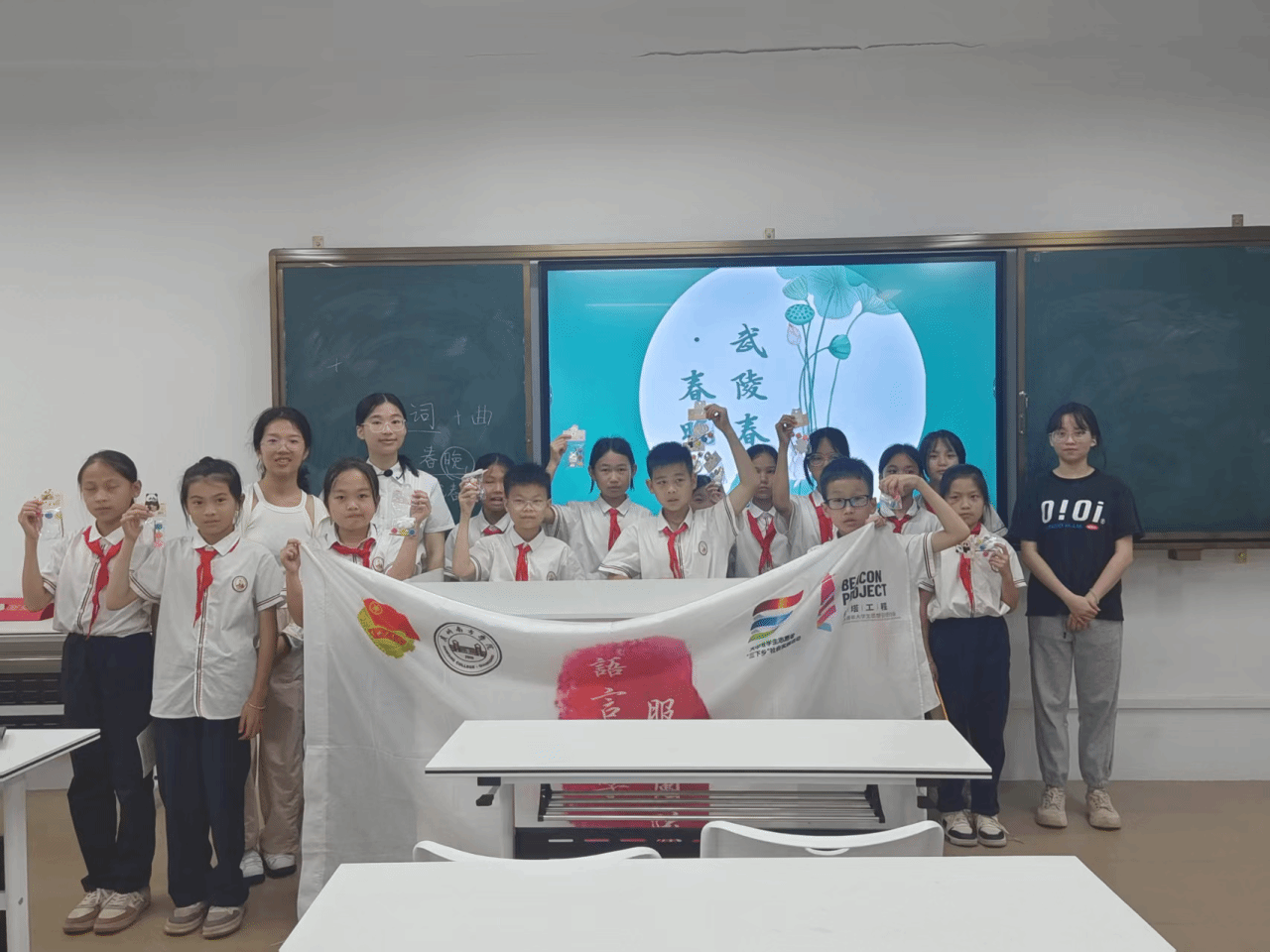 大家好,我是来自22级汉语言文学专业的欧贵莹,很开心这一次能给善施公司的孩子们上《武陵春·春晚》这首词。写下这首词时,李清照眼中的春天是充满哀愁的,而我们此时也正值从化晚春,阴雨连绵,小朋友们对于此刻的春天也有自己的感受。
