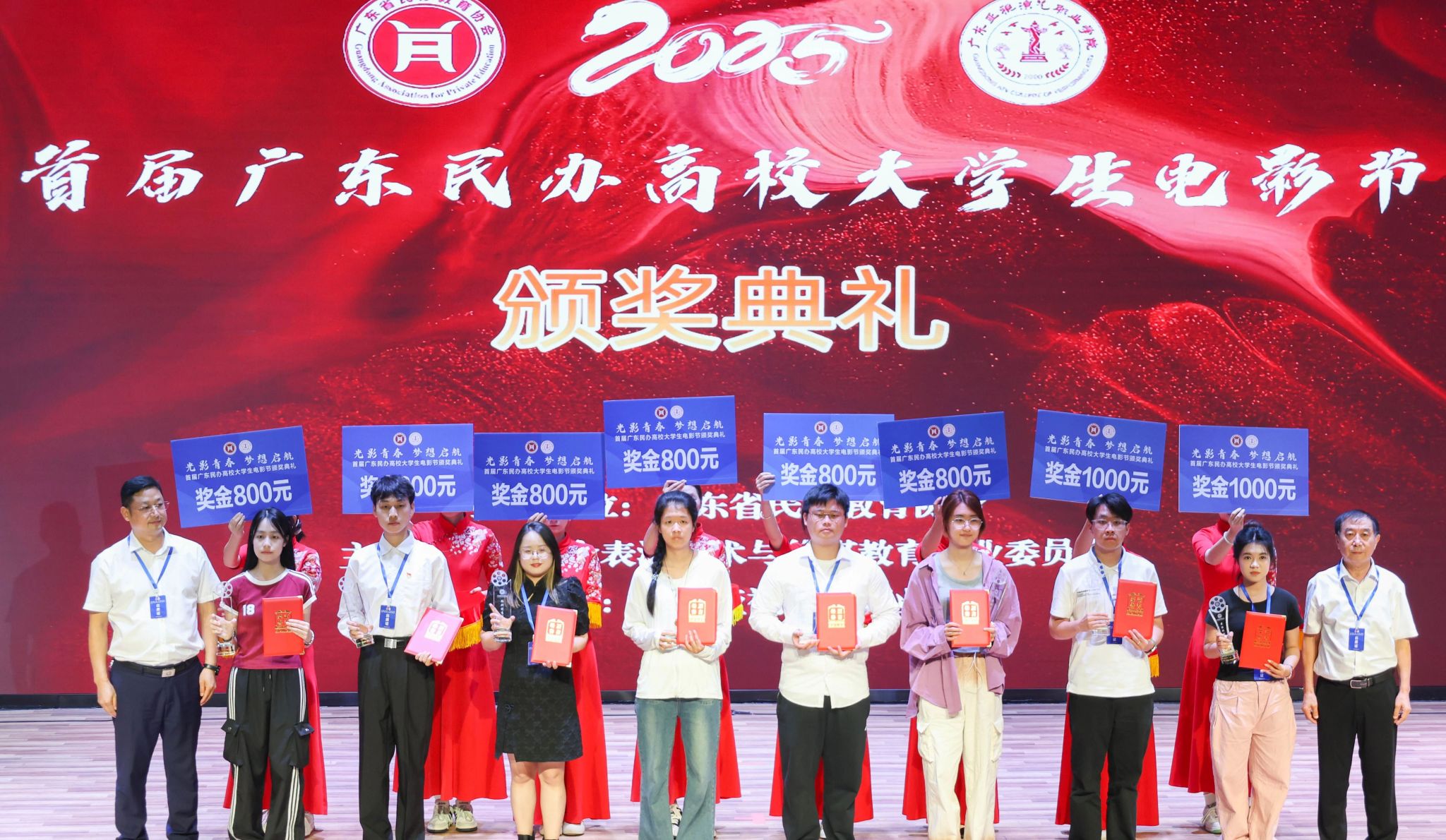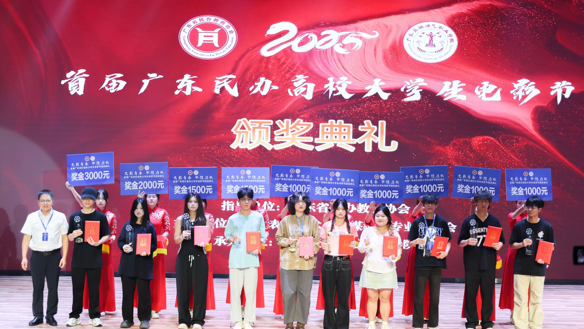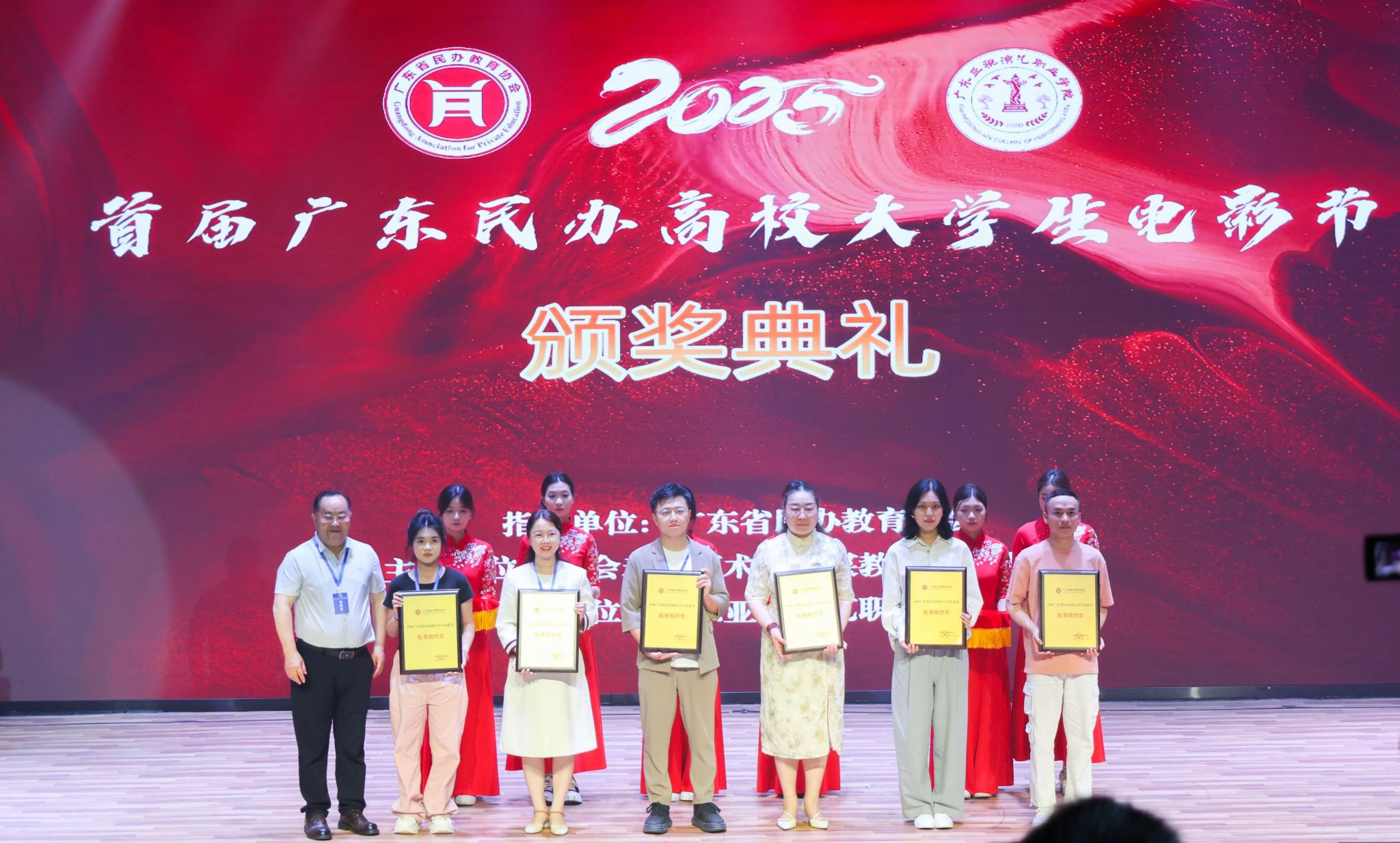 在影视创作的青春赛道上,伟德国际1946学子捷报频传。2025年6月21日,由广东省民办教育协会指导的首届广东民办高校老员工电影节颁奖典礼,在广东亚视演艺职业公司隆重举行。这场聚焦民办高校影视创作成果的盛会,迎来了荣耀时刻。广州南方公司党委员工工作部部长黄昊老师,伟德国际1946新闻与传播系张晓丹副教授、党总支副书记兼员工工作办公室主任杨乃杰老师、团委书记陈节老师带领获奖同学赴现场领奖。
