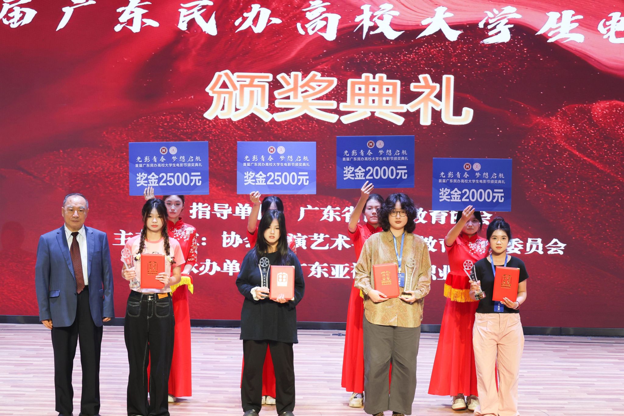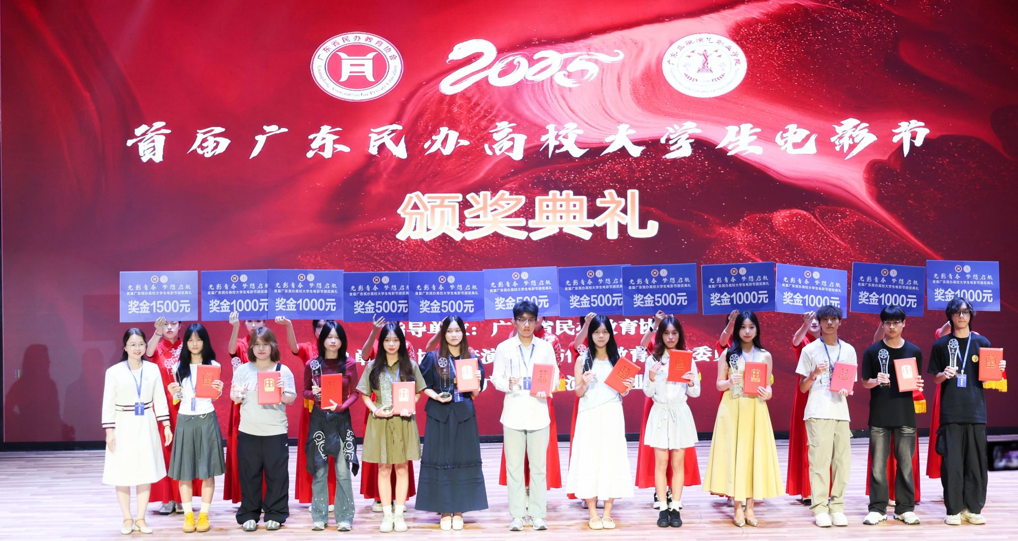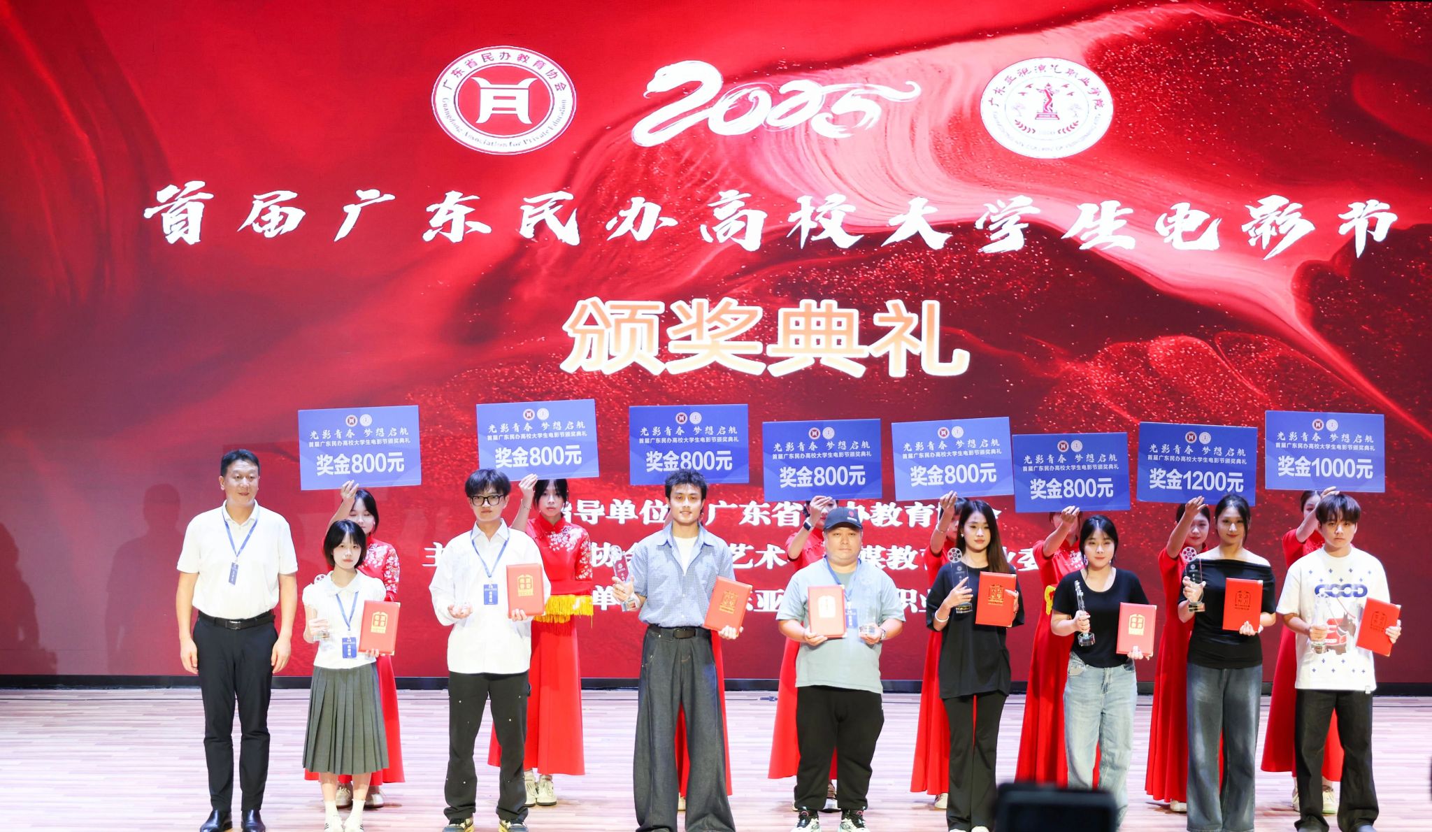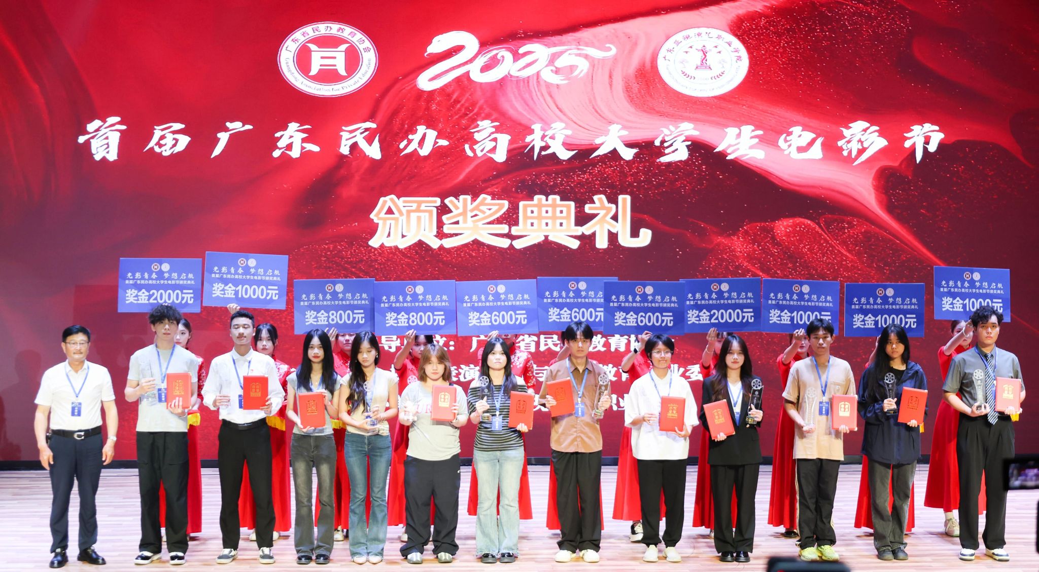在影视创作的青春赛道上,伟德国际1946学子捷报频传。2025年6月21日,由广东省民办教育协会指导的首届广东民办高校老员工电影节颁奖典礼,在广东亚视演艺职业公司隆重举行。这场聚焦民办高校影视创作成果的盛会,迎来了荣耀时刻。广州南方公司党委员工工作部部长黄昊老师,伟德国际1946新闻与传播系张晓丹副教授、党总支副书记兼员工工作办公室主任杨乃杰老师、团委书记陈节老师带领获奖同学赴现场领奖。