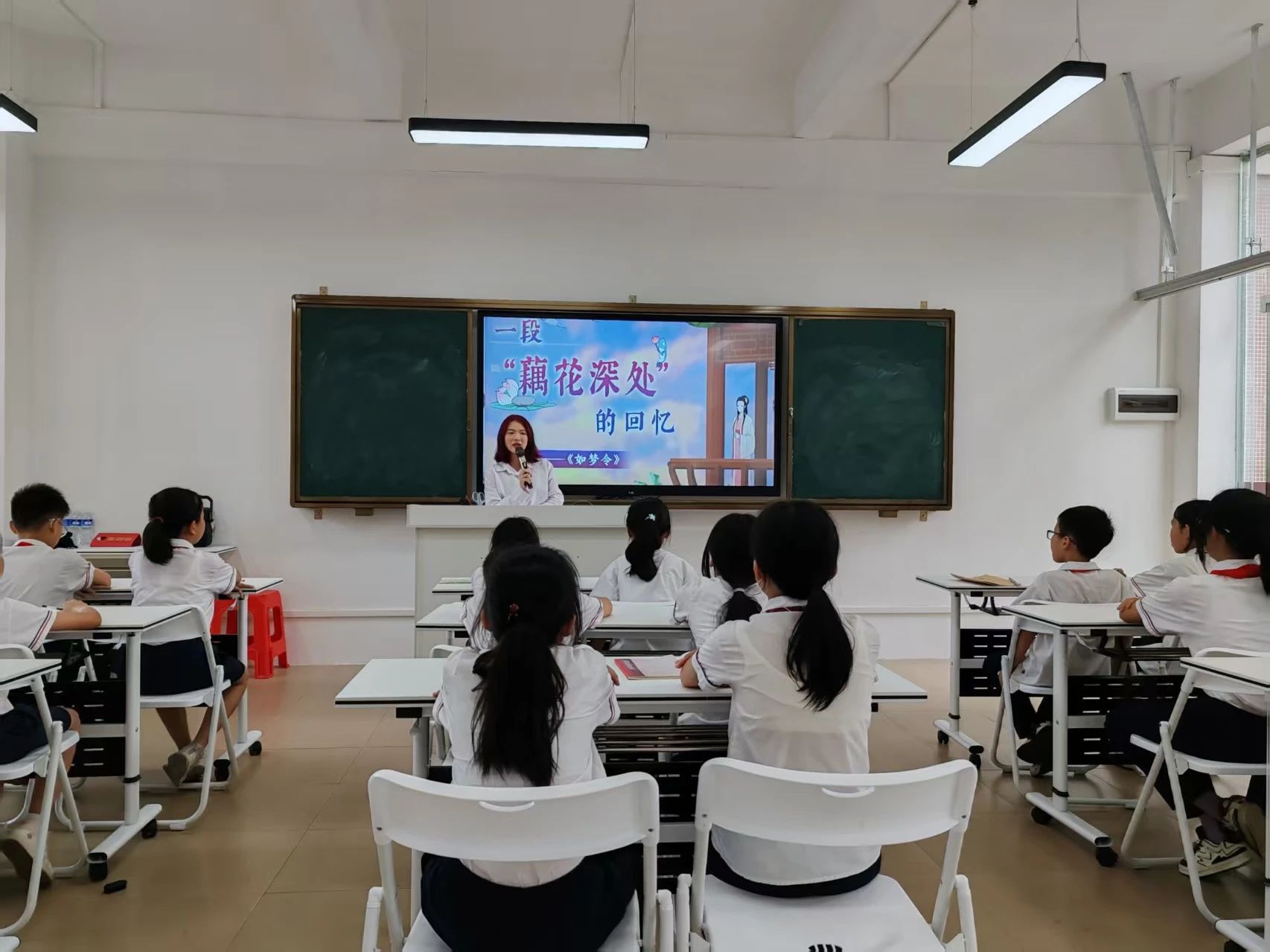 课堂伊始,小温老师以轻松的口吻引入主题,讲述了李清照的少女生活。她提到,李清照出生于一个书香门第,自幼才情出众,她的诗词作品常常流露出对生活的热爱和对自然的赞美。《如梦令》便是她少女时期的代表作之一,充满了青春的活力与诗意。小温老师的讲述生动而富有感染力,同学们听得津津有味,仿佛看到了那个在溪亭边嬉戏的少女,感受到了她无忧无虑的快乐。
