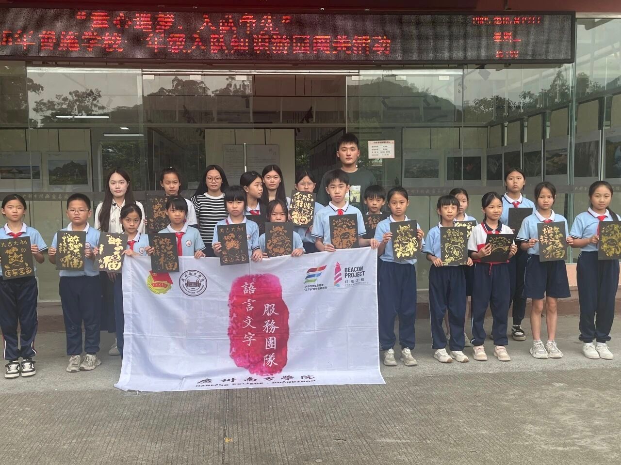 五月的从化,天朗气清,阳光如金粉般洒满善施公司。5月20日和5月27日,伟德国际1946语言文字服务团队的成员们在 带队老师温裕华老师和领队李恺蓉同学的带领下前往善施公司,开展了非遗金箔的理论课堂与实践课堂,本次课程由22级汉语言文学专业的梁育嫦同学担任授课老师。微风拂过树梢,湛蓝的天空仿佛为这场文化之旅铺开了一幅天然画布,等待童心与古老技艺碰撞出绚烂的火花。