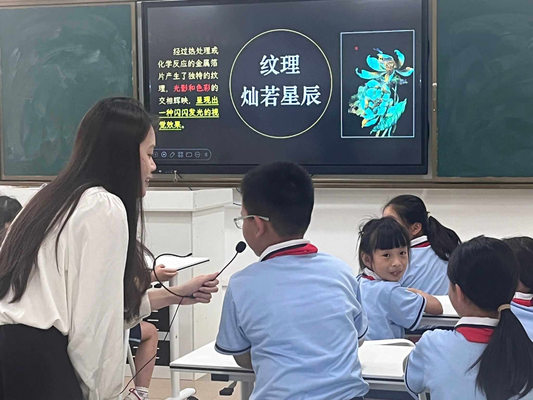 “何为金箔画?”梁育嫦老师的问题一抛出,同学们的眼睛瞬间亮了起来。PPT上,金箔的历史与文化价值、金箔的制作工艺,像一幕幕历史动画在眼前展开。