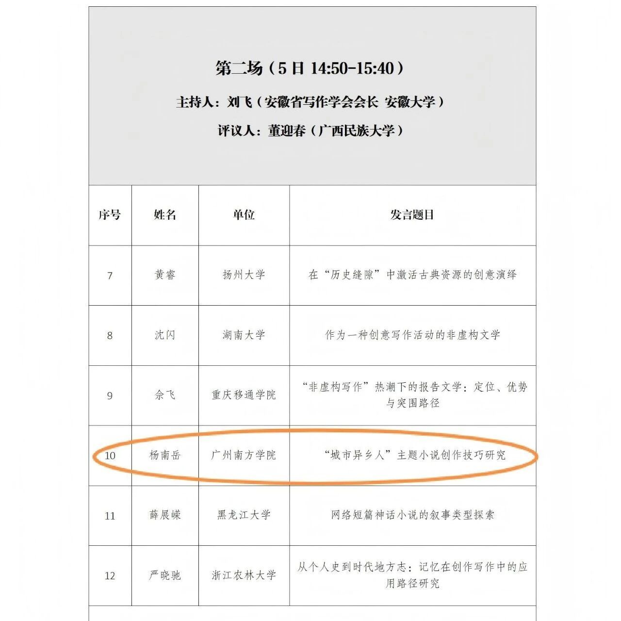 杨南岳老师发言场次