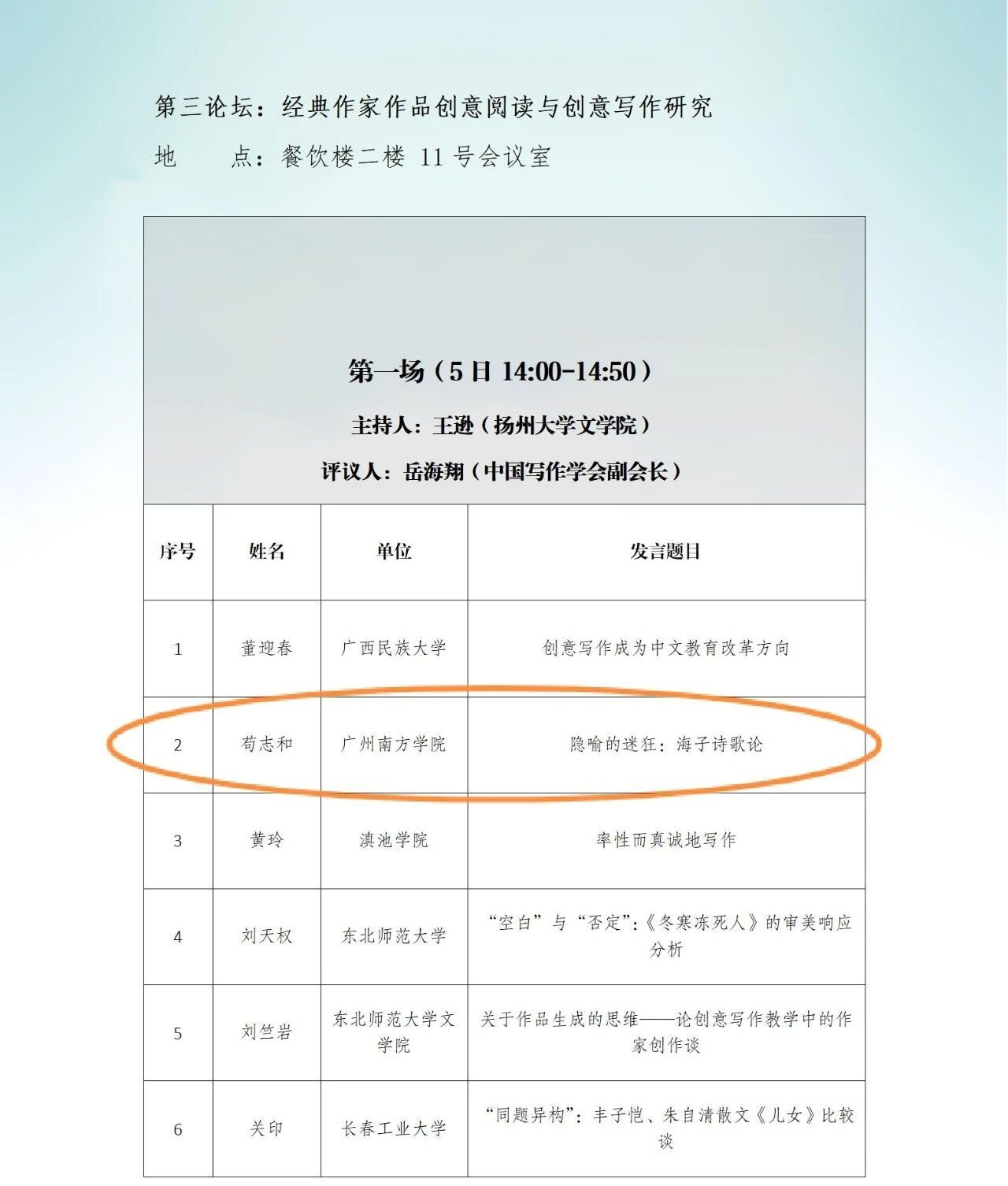 苟志和老师发言场次