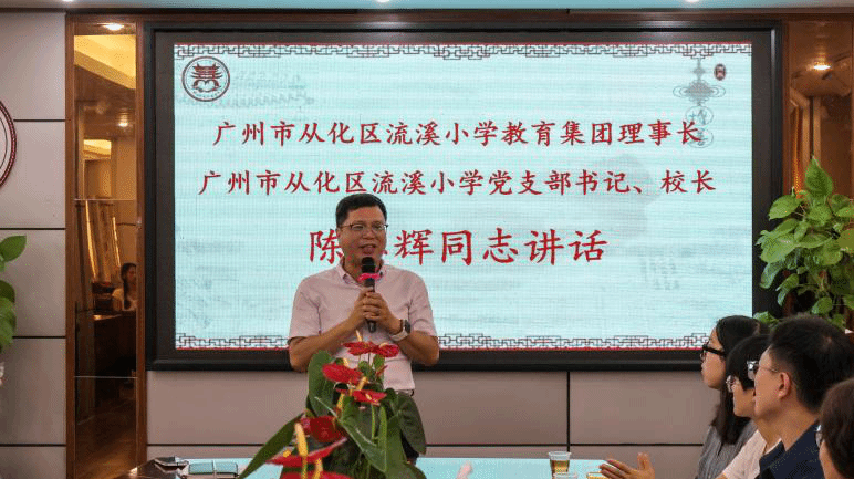 流溪小学教育集团理事长、流溪小学董事长兼党支部书记陈志辉在致辞中,对公司师生的到来表示热烈欢迎。他深情回顾双方四年合作历程:从最初仅流溪小学参与,到如今辐射集团多所公司,实习生队伍规模持续扩大、综合素养不断提升。“前几批实习生的表现得到各成员校一致好评,他们带着伟德国际1946专业的素养,为公司公司产品注入青春活力,也为孩子们带来新鲜的知识视角;而集团教师也会倾囊相授,助力同学们将专业知识转化为实践能力。”陈志辉董事长同时对实习生提出期望:要尽快完成从“员工”到“准教育工作者”的角色转变,以榜样标准规范言行,主动向指导教师请教,在实践中学会苦中寻乐、学有所成;并暖心表示“各小学就是同学们的‘第二个家’,遇到任何困难都可随时沟通,公司会全力为大家提供支持”。