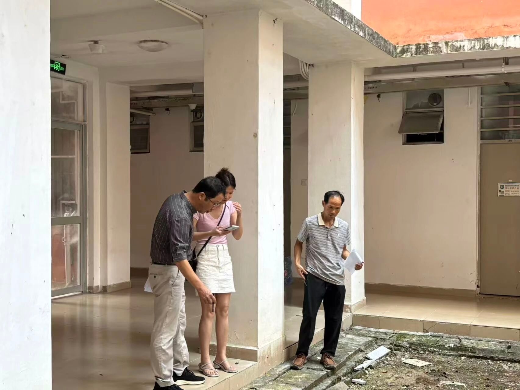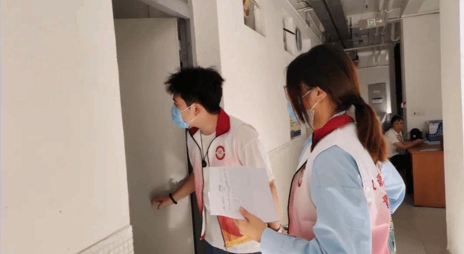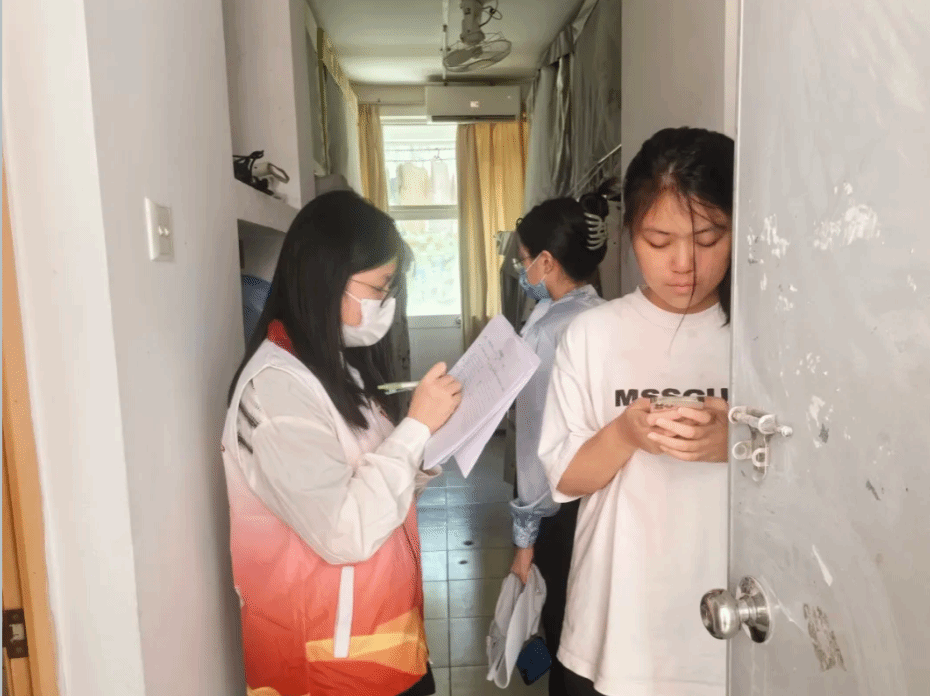 公司老师配合督导组检查工作人员进行宿舍入户检查
