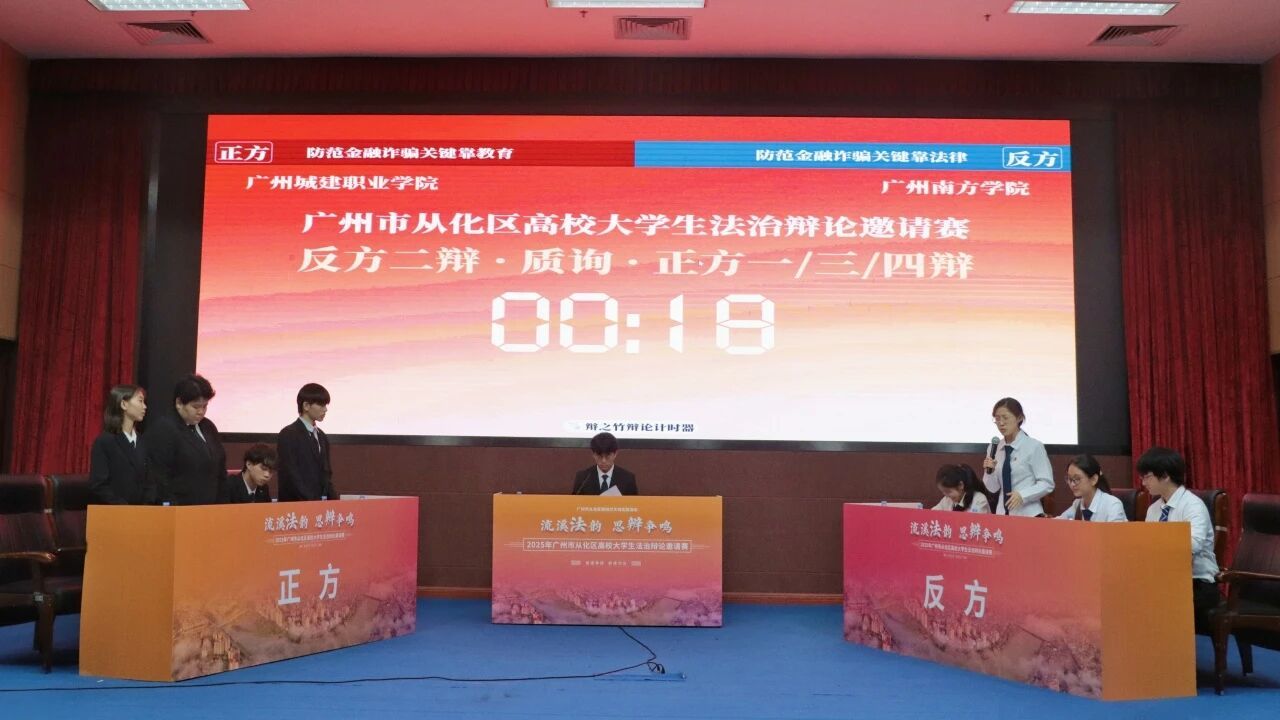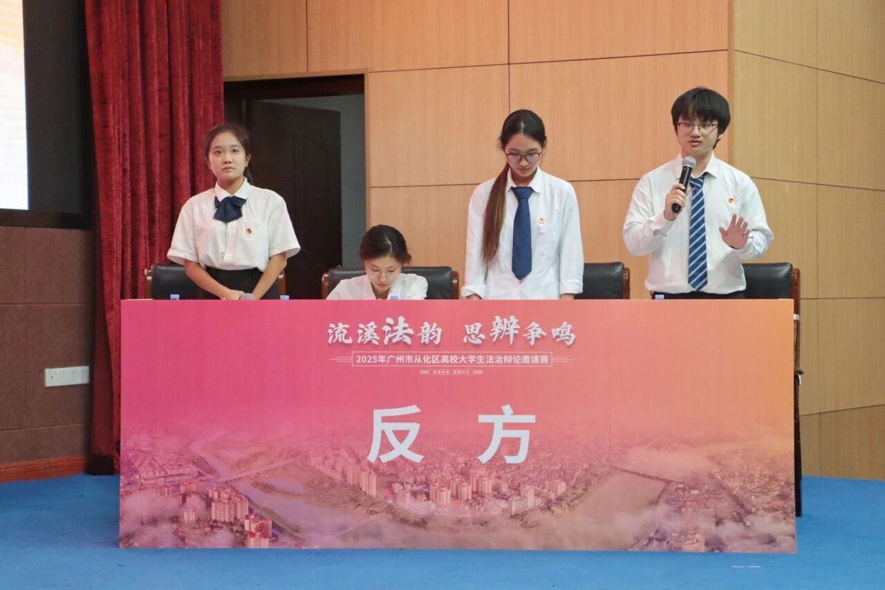 9月20日上午,“流溪法韵 思辨争鸣”2025年广州市从化区高校老员工法治辩论赛在广东水利电力职业技术公司揭幕。公司选派张子盈(2023级汉语言文学)、潘诗淇(2023级新闻学)、胡晨雨(2024级新闻学)等4名同学与1名替补队员组队参赛,由公司教学质量评建与督导办公室黄昊老师、新闻与传播系刘禹彤老师、中国语言文学系刘睿芝老师担任指导老师,首战对阵广州城建职业公司胜出,成功锁定复赛席位。