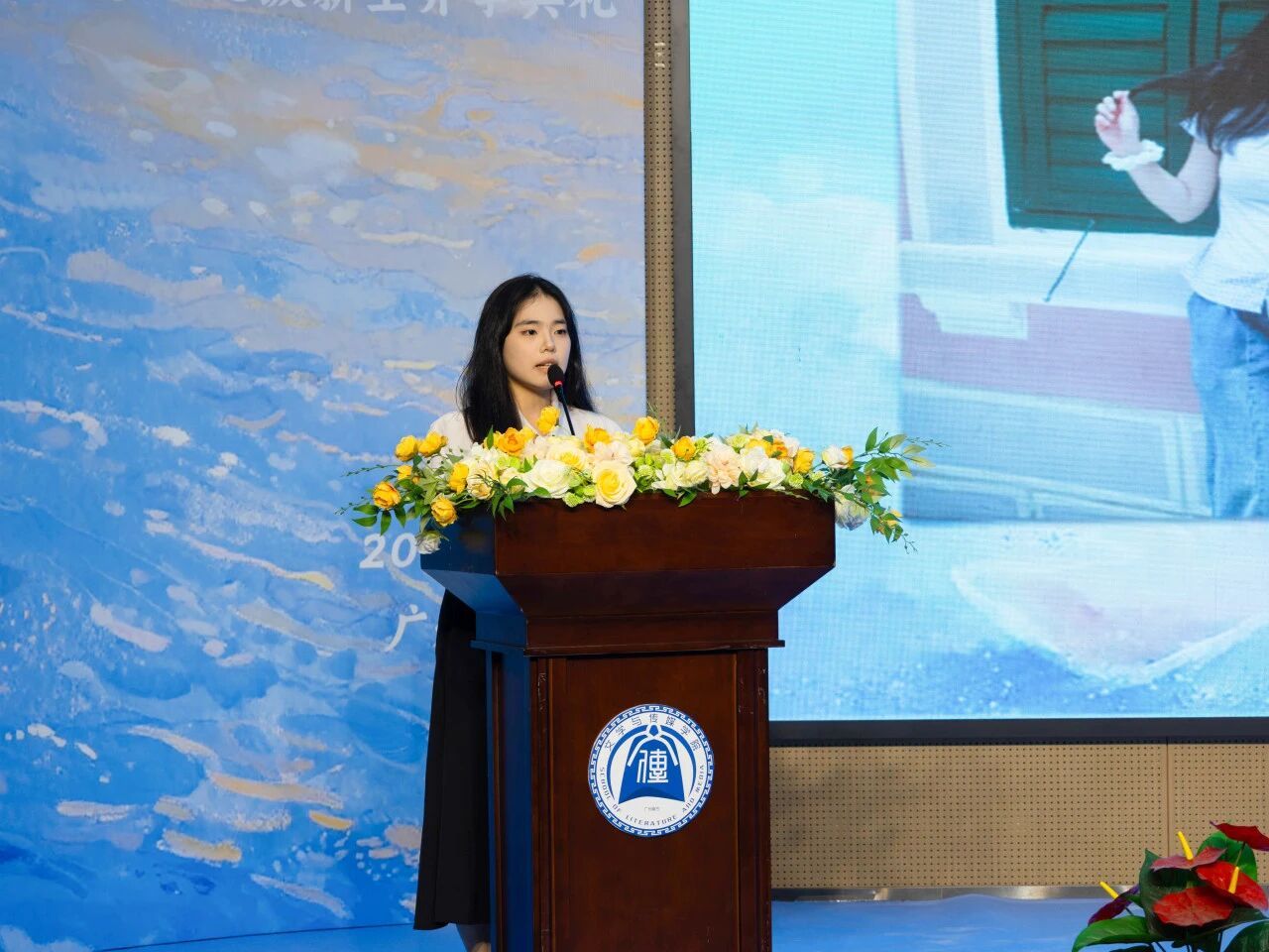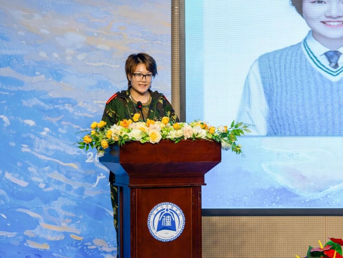 2025级汉语言文学4班新生周乐杨作为新生代表分享开学感悟