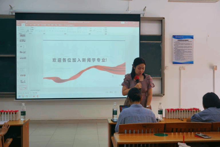 为了帮助新闻学专业新生更全面、清晰地了解本专业的育人理念、课程设置, 9月28号中午12:30,新生辅导员徐硕老师于1教202主持召开了新闻学专业新生见面会暨专业宣讲会。本次宣讲由新闻与传播系主任陈珂副教授主讲,杨萍副教授、张晓丹副教授、温灵副教授,吴迎春、张嘉伟、梁爽等多位青年骨干教师共同参与。专业教师们围绕新闻学专业的专业建设历程、课程体系、团队力量、实践实训模式等多个方面进行了全面而深入的介绍。介绍会内容详实、环节紧凑,旨在帮助新生点亮专业学习的“第一盏灯”。