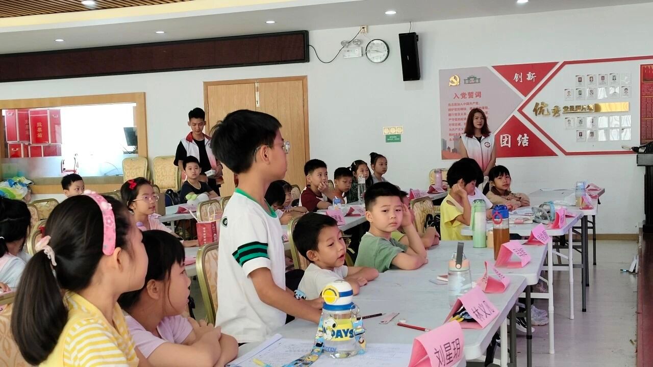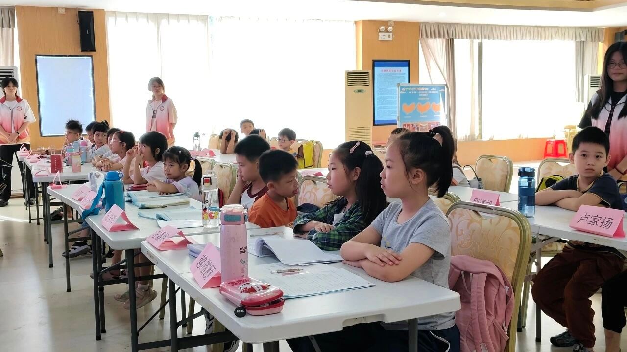 七月流火,蝉鸣阵阵,却挡不住青春的步履与热忱。在这个火热的夏天,文鼎筑梦传薪队的队员们怀揣着赤诚与理想,走进容桂街道振华社区党群服务中心,将知识的种子播撒在小朋友们的心田。7月14日,是义教活动正式开启的第一天,文鼎筑梦传薪队派出三名队员早早便在党群服务中心迎接小朋友们,而其余的7名队员则在三楼教室井然有序地为课程做准备。干净整洁的教室里弥漫着活力与期待的气息。