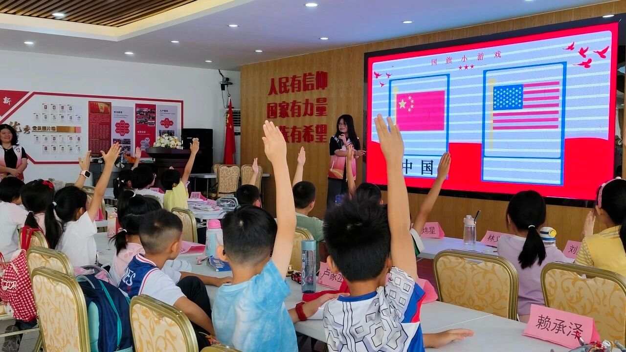 孩子们全神贯注地聆听,积极抢答老师的提问,眼神中流露出对国旗国徽的好奇与深深的敬意。这堂课不仅让孩子们了解了图案背后的象征意义和设计故事,更是在他们幼小的心灵里悄然种下了国家认同感和民族自豪感的种子。